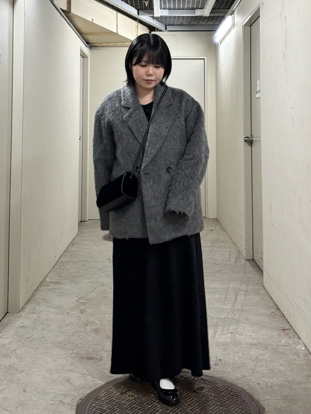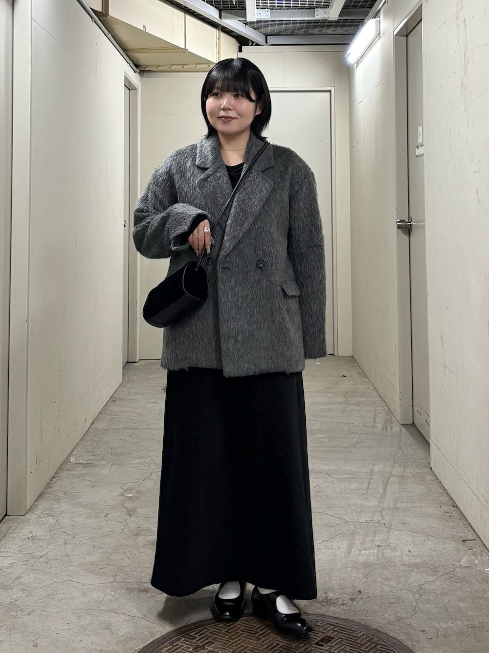 ・オーバーサイズのアウターにはシルエットがコンパクトなシルエットのキャミワンピースを合わせて全身のバランスを取ってみました.ᐟ.ᐟ.ᐟ