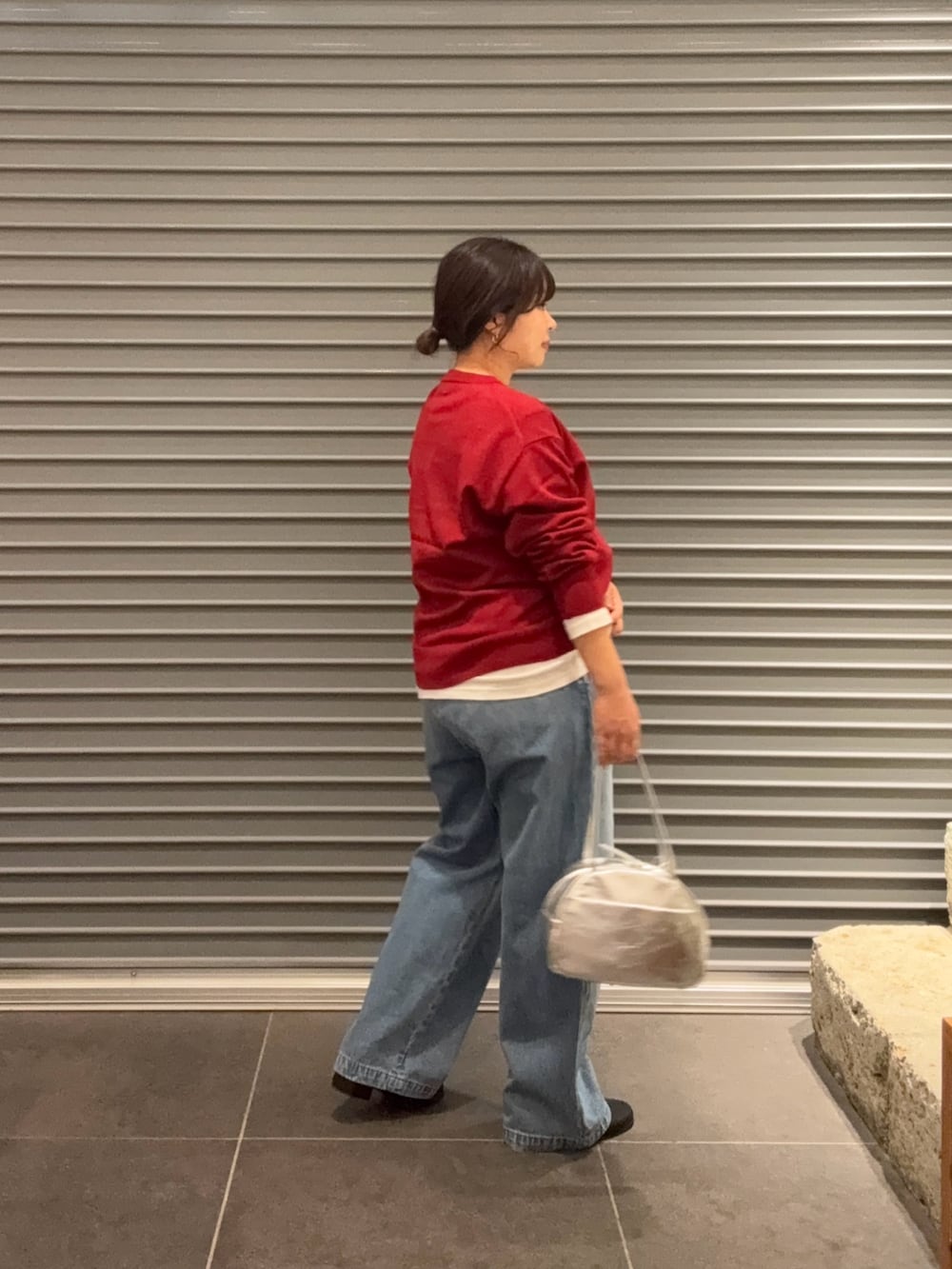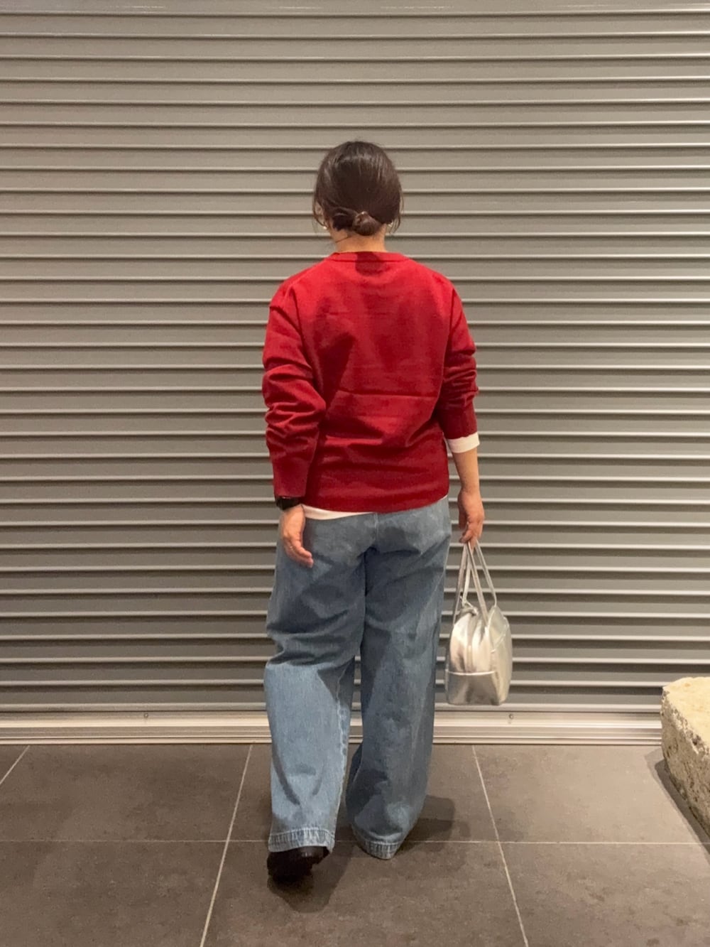 赤ニット×シルバー小物はクリスマスやイベントにも華やかさがプラスされておすすめです。