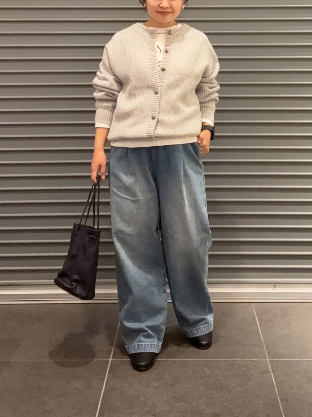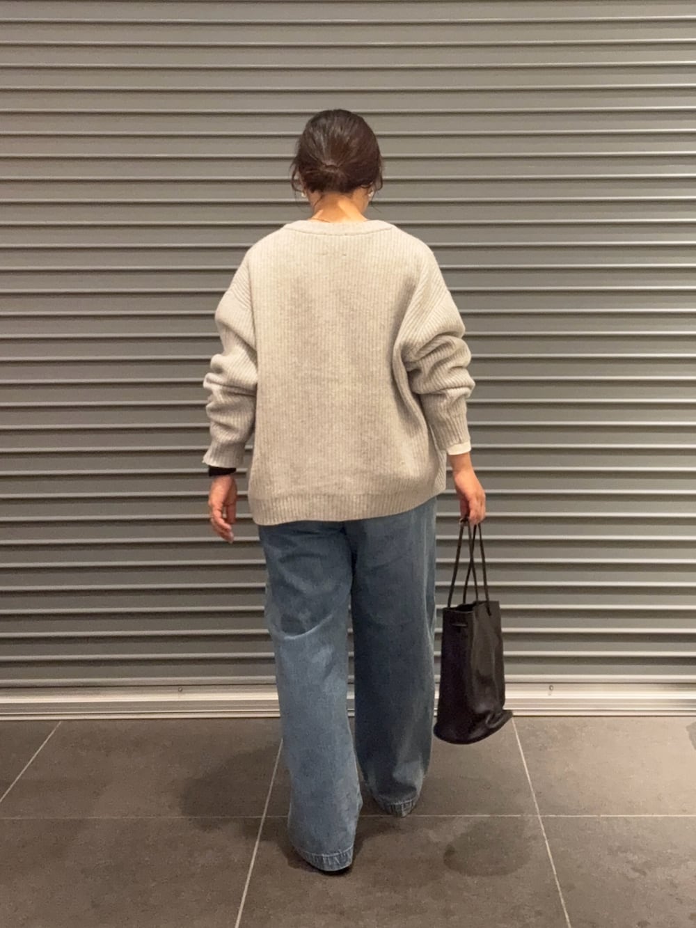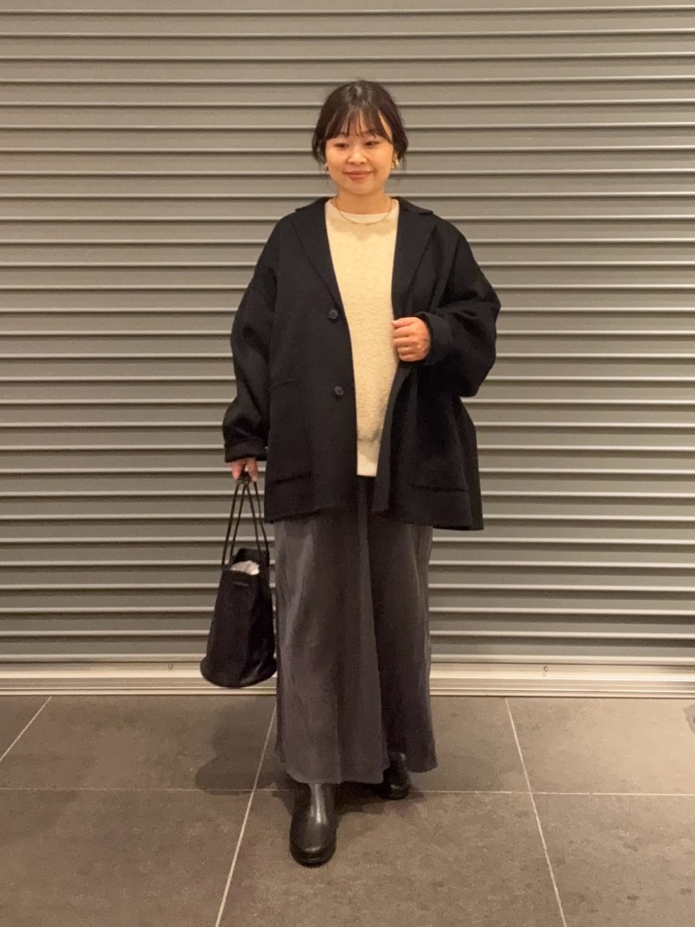 程よく肉厚な素材感のカーディガンなので、日中はライトアウターとしてもおすすめです。着丈も長めでゆるっとシルエットが可愛いです。