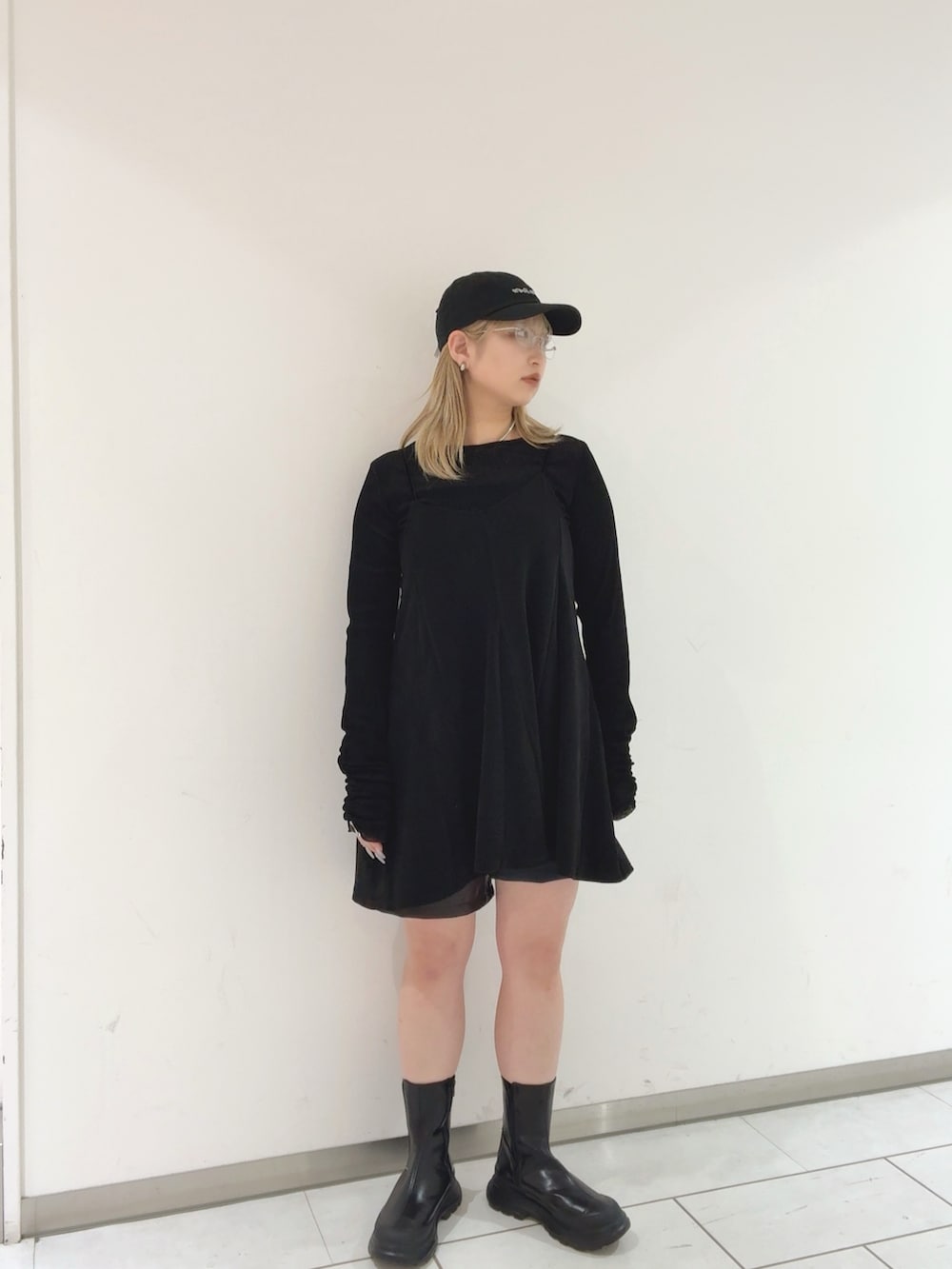 ミニのキャミワンピースに黒ベロアのトップスでブラックワントーン🐦‍⬛