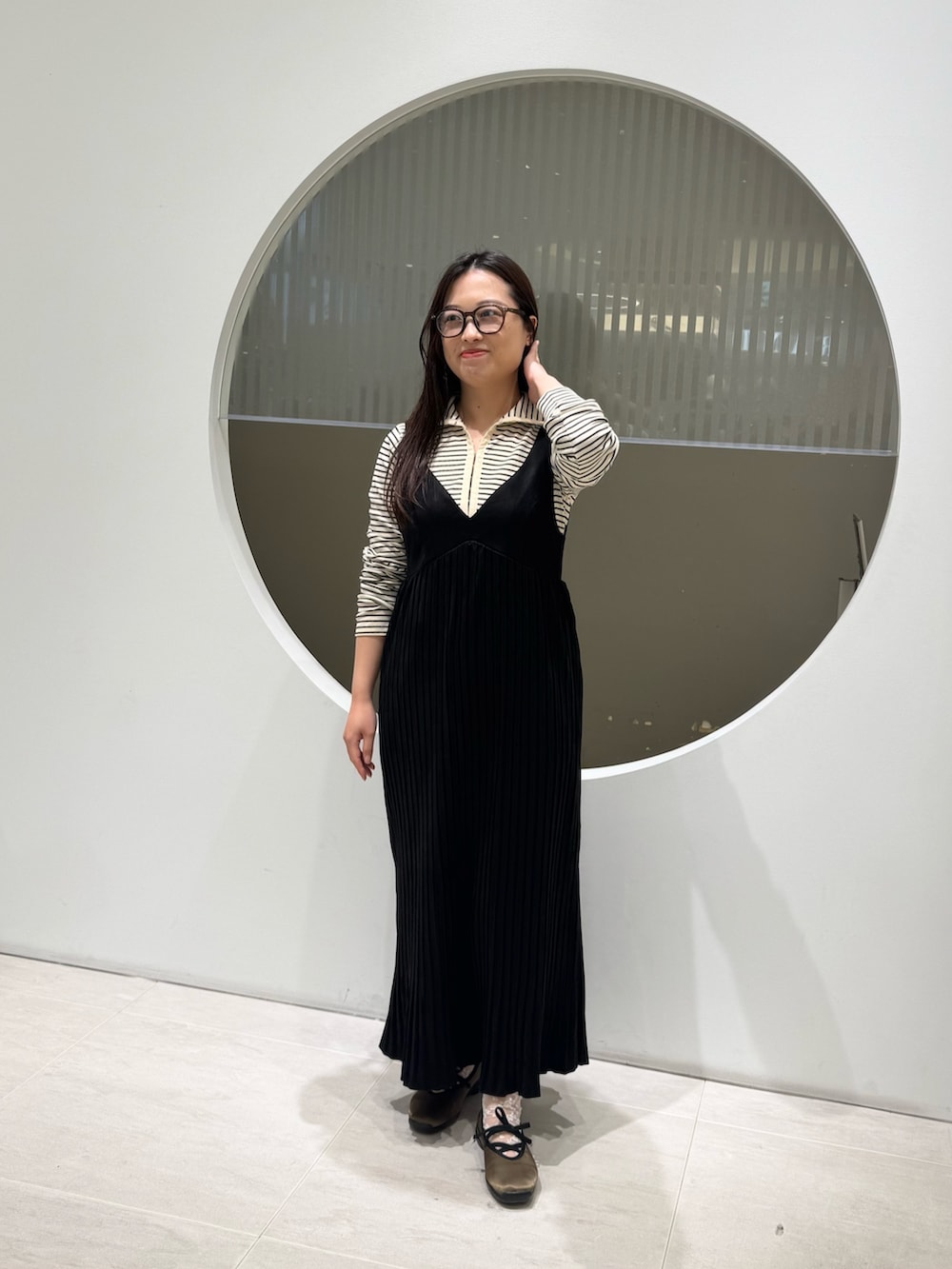 インナーの組み合わせ次第で雰囲気を変えられる万能ワンピースです◎