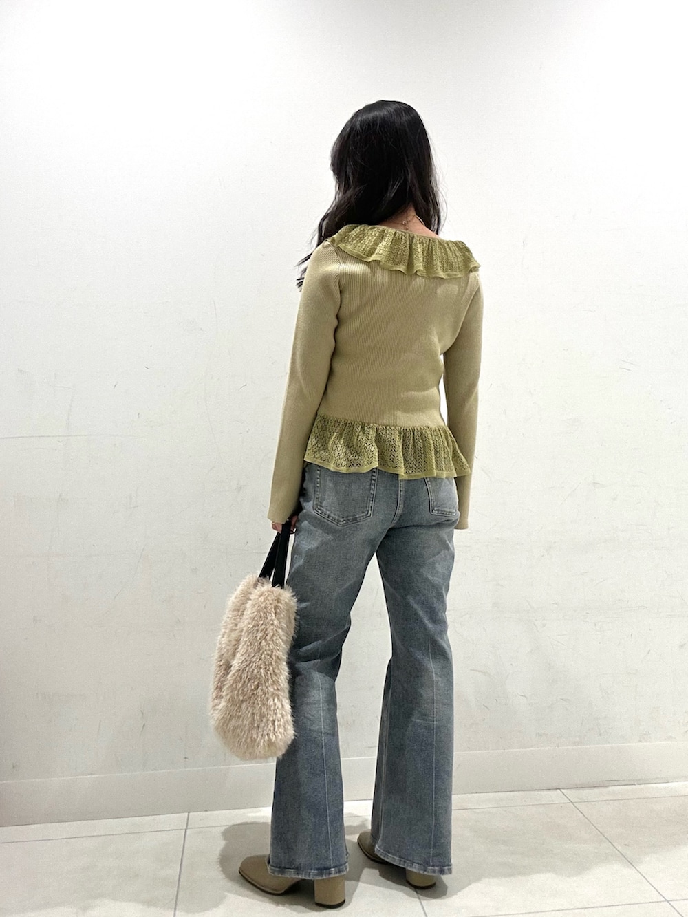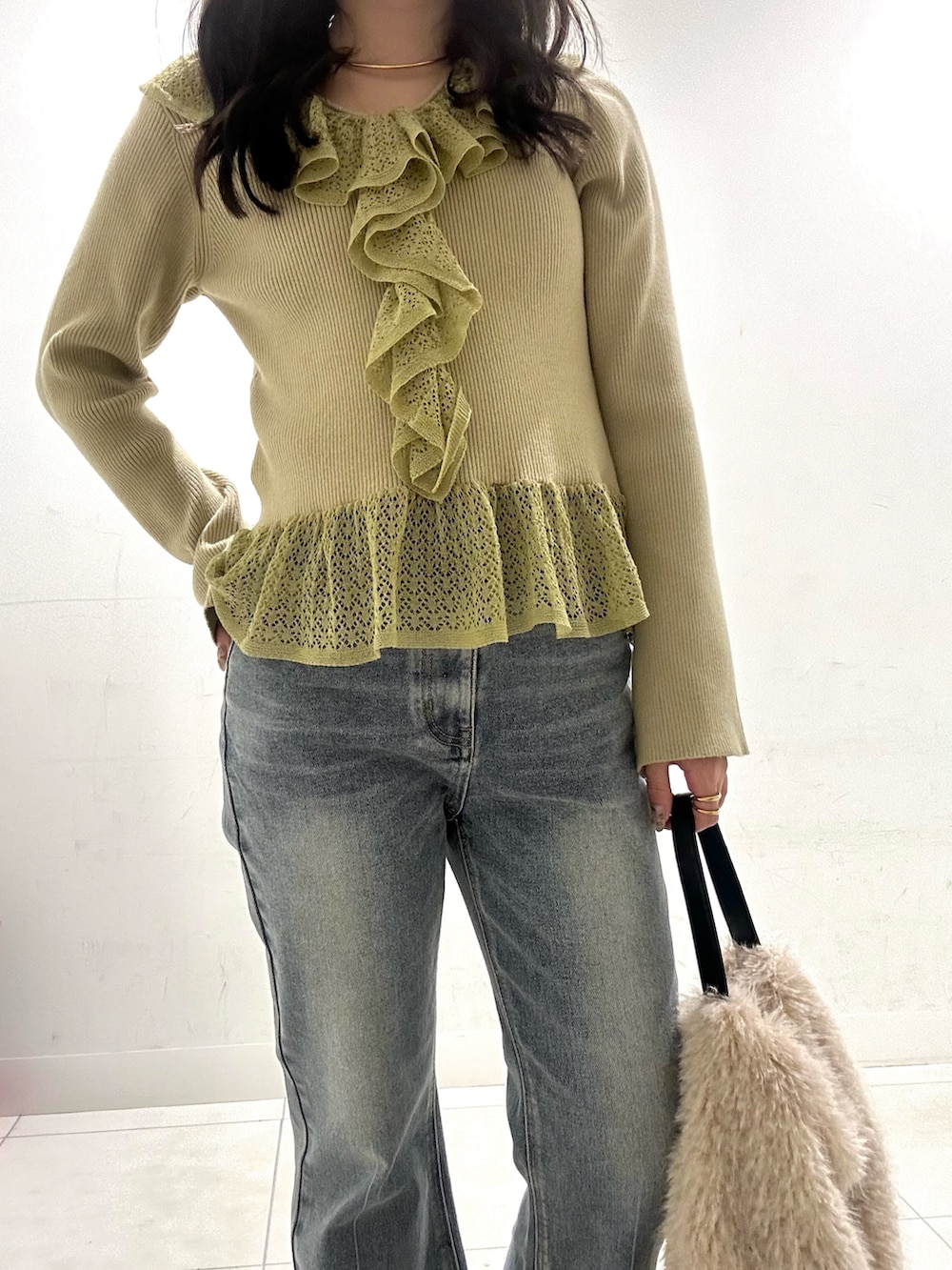SENSE OF PLACE『洗濯可』フリルレースフレアスリーブニット- カラー: