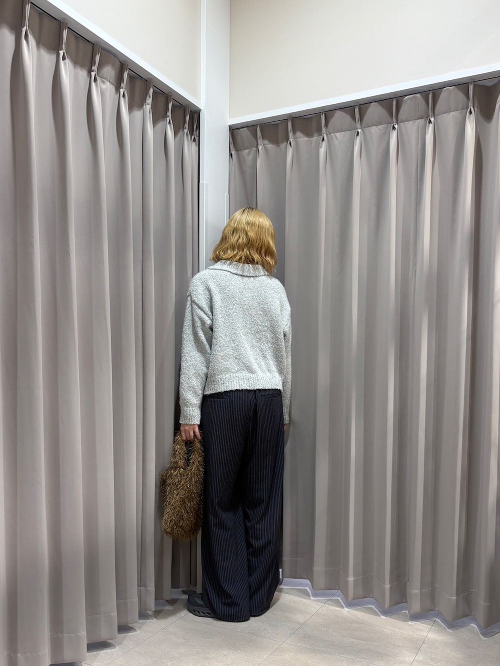 トップスのニットはレイヤードでロンTを見せてもかわいいデザイン性のあるニットです!