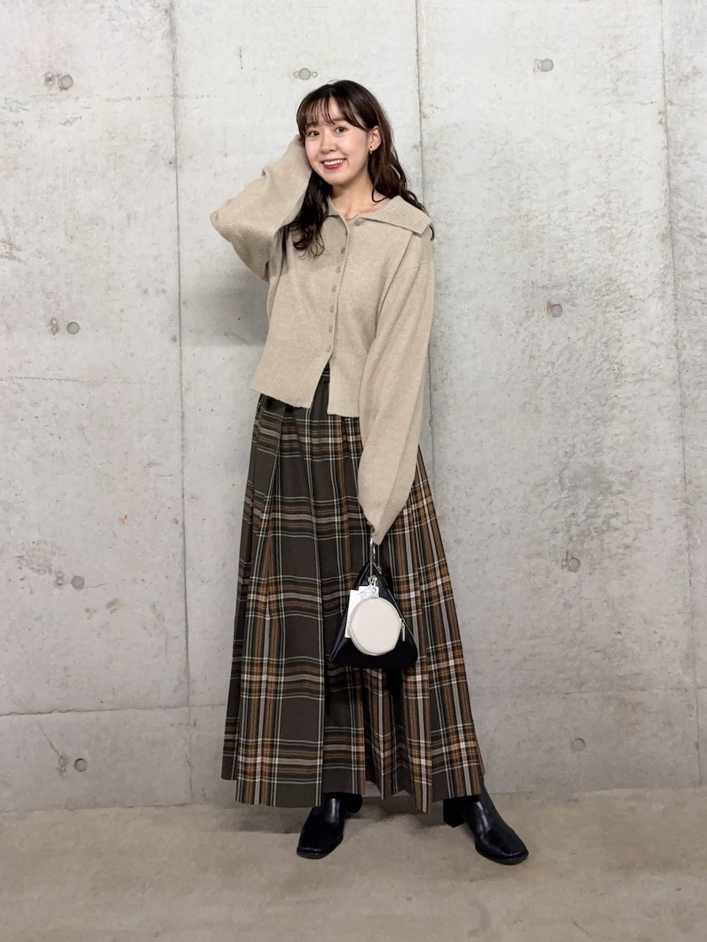 ブラウンのチェックスカートを合わせてレディライクに仕上げました☺️✨