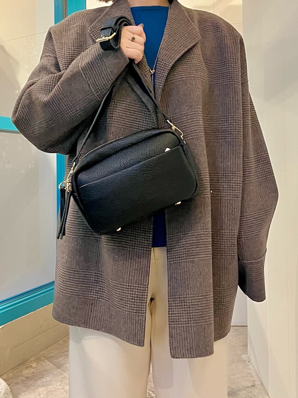 コクーンシルエットでアームホールもゆとりがあり、厚手の物も中に着やすいです。