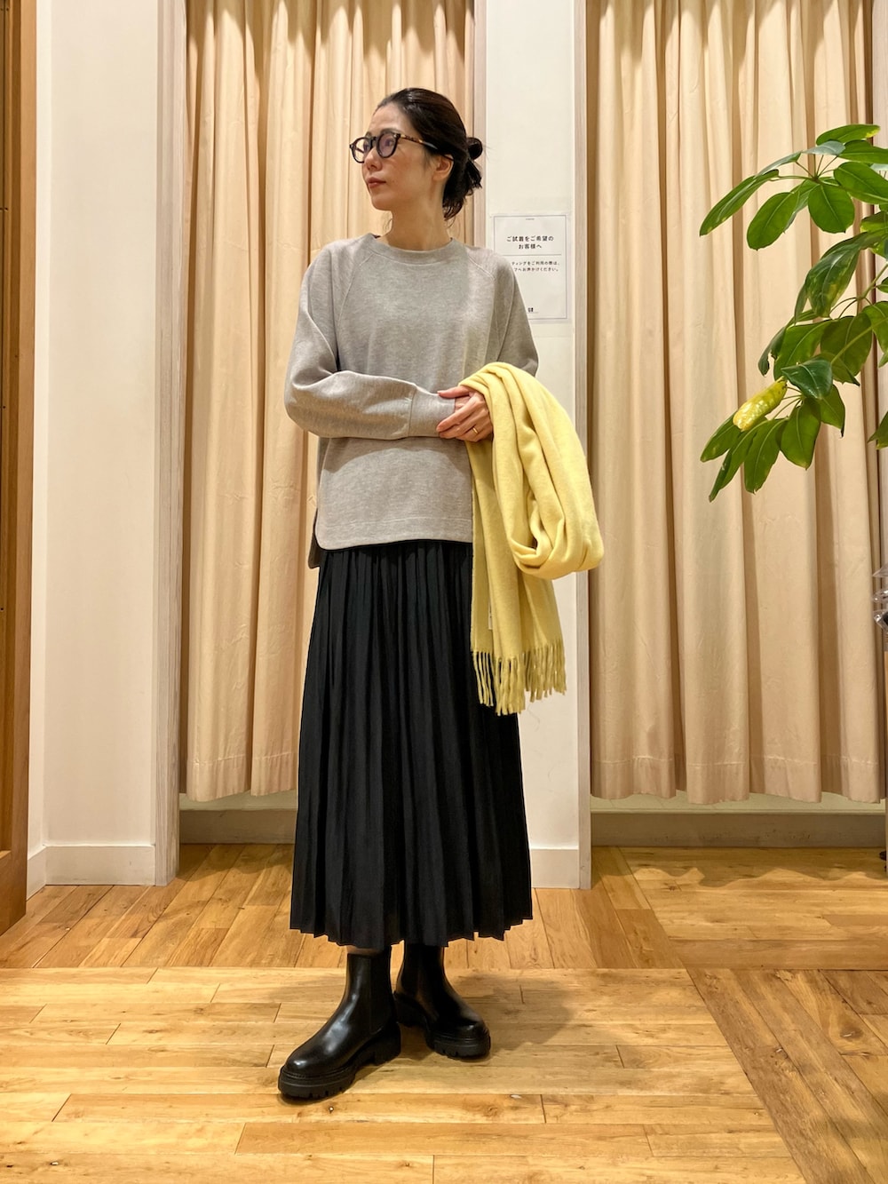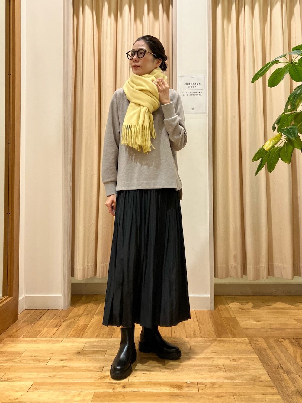 イエローのストールをワンポイントにシンプル大人カジュアルコーデに◎