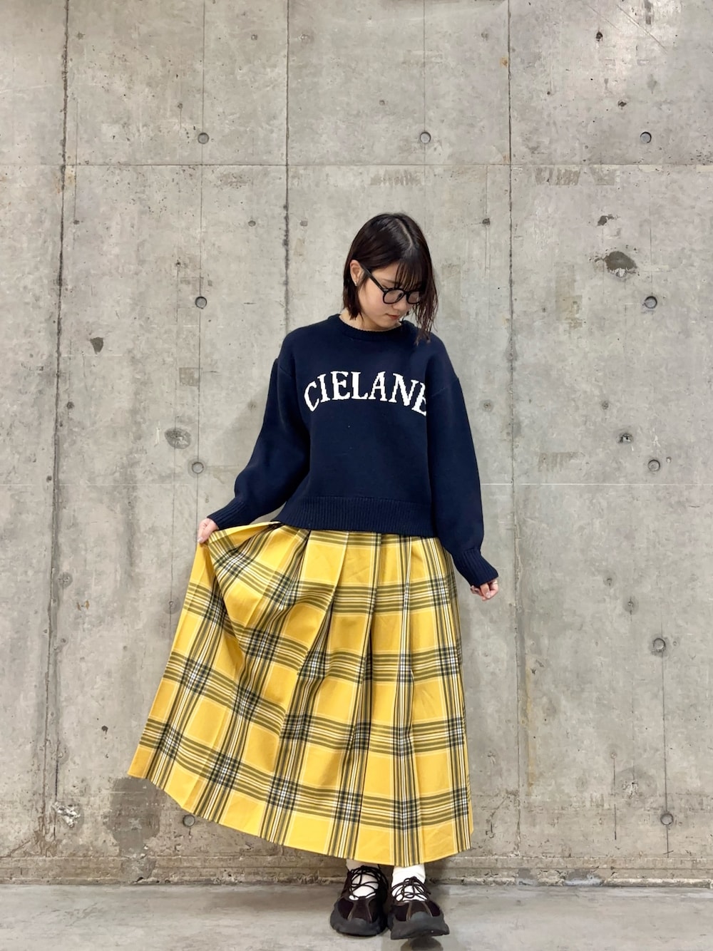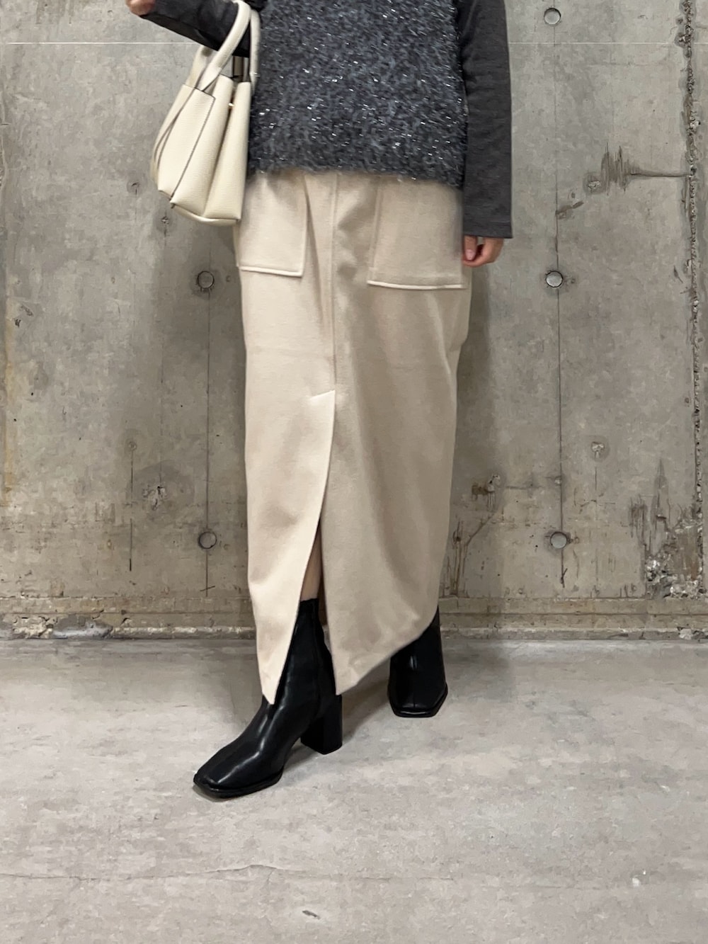 スカートは秋冬にとても重宝する暖かい生地になっています