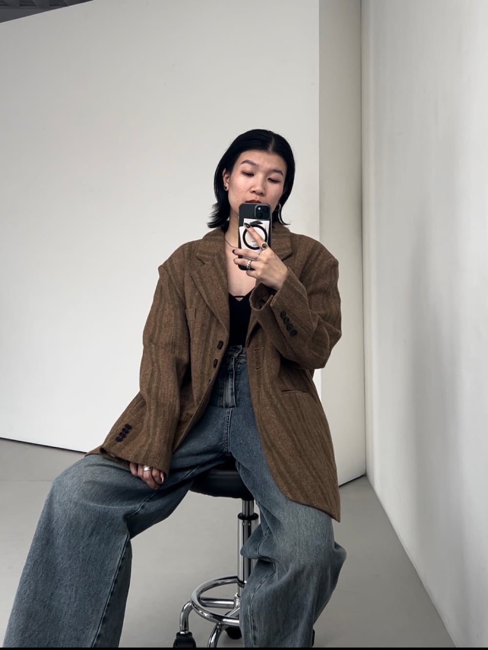 少し肩パッドが入っている今年らしいシルエットがポイント!