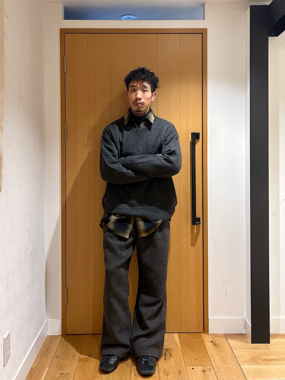 ヘンリーネックタイプなので中にレイヤードしてもよし、寒い日は閉めてきてもよしの万能アイテムです。