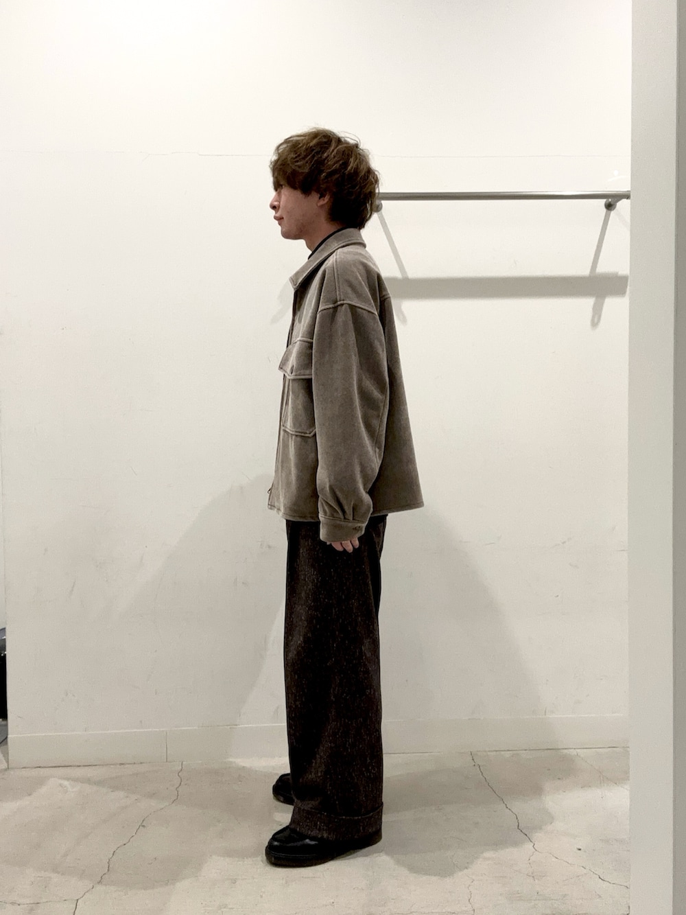 タートルネックニットにジャケットを羽織り、ヴィンテージ風のパンツでまとめてみました!全体的に色がまとまって大人っぽいコーデになります!