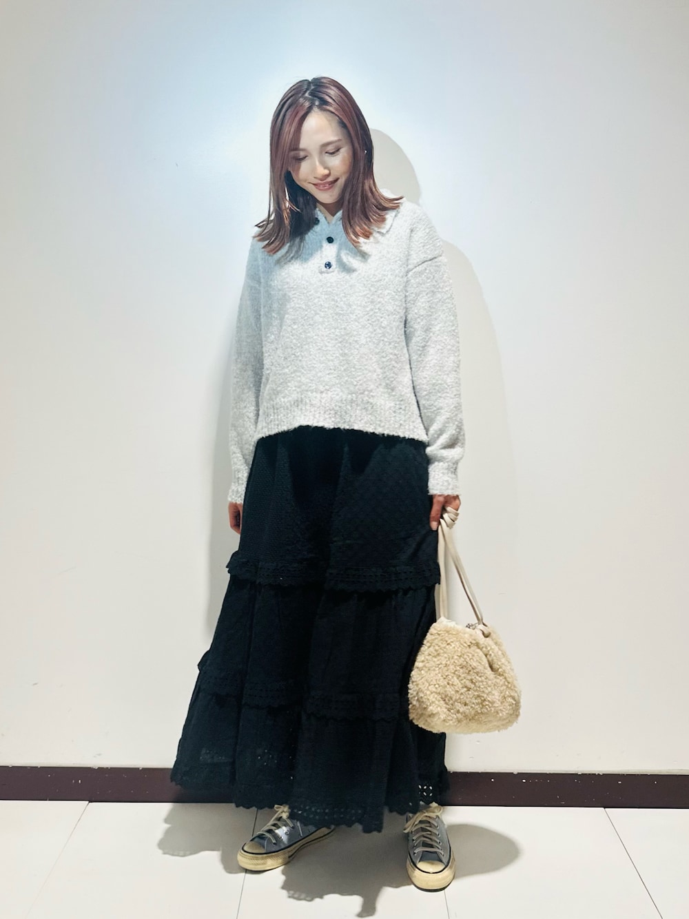 インナーのニットは、フリルデザインで1枚で様になります♡