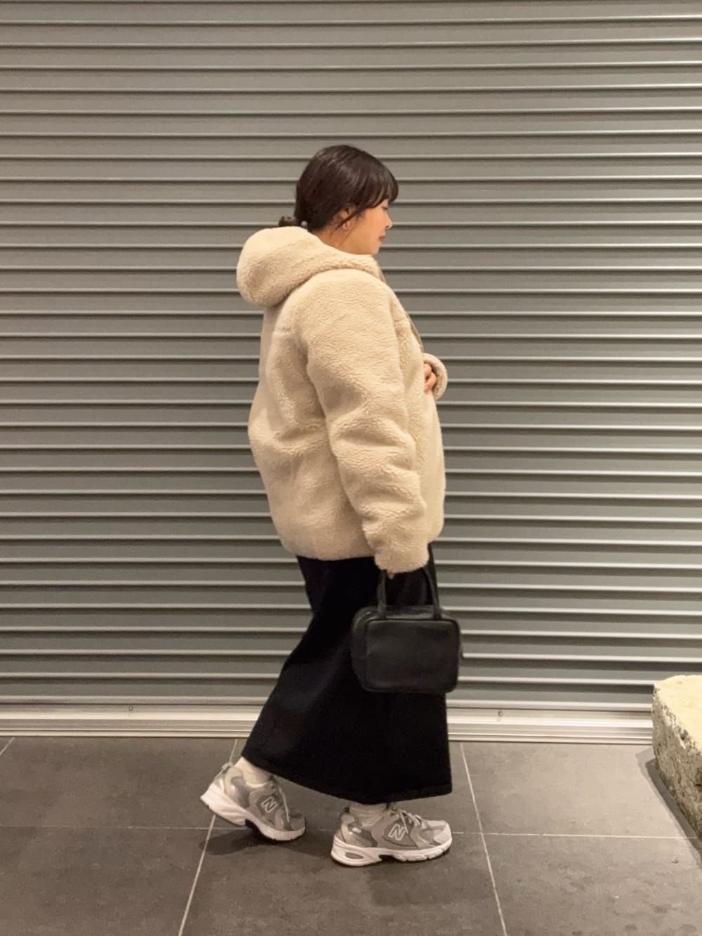 200日ニットスカートとニューバランスでカジュアルコーデにしました。