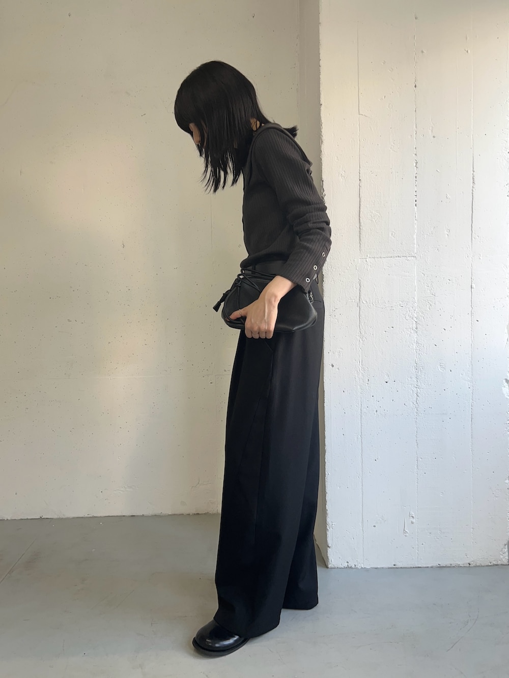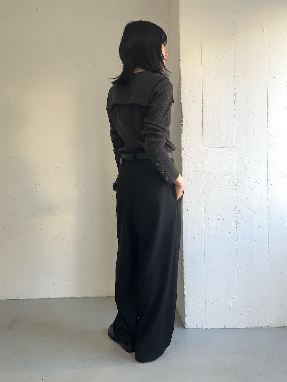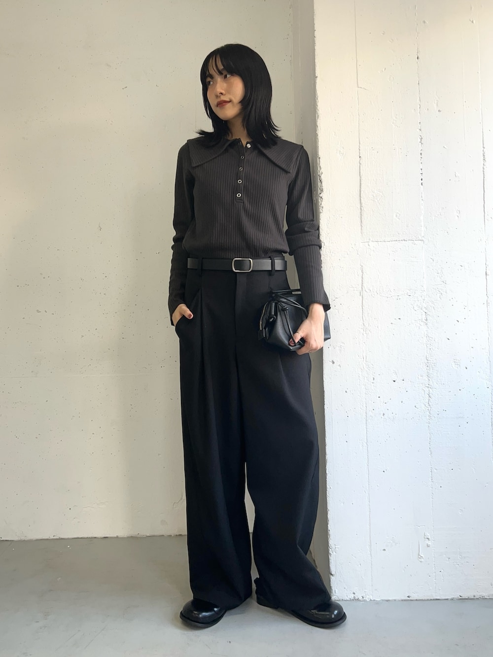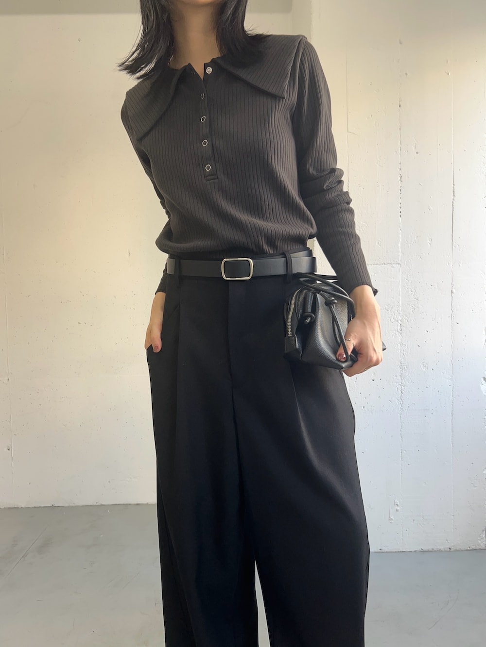 セーラーカラーのリブトップスに、スラックスを合わせて、ワントーンコーデにしてみました。