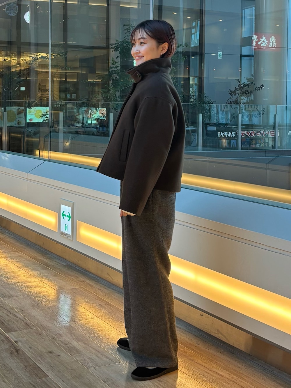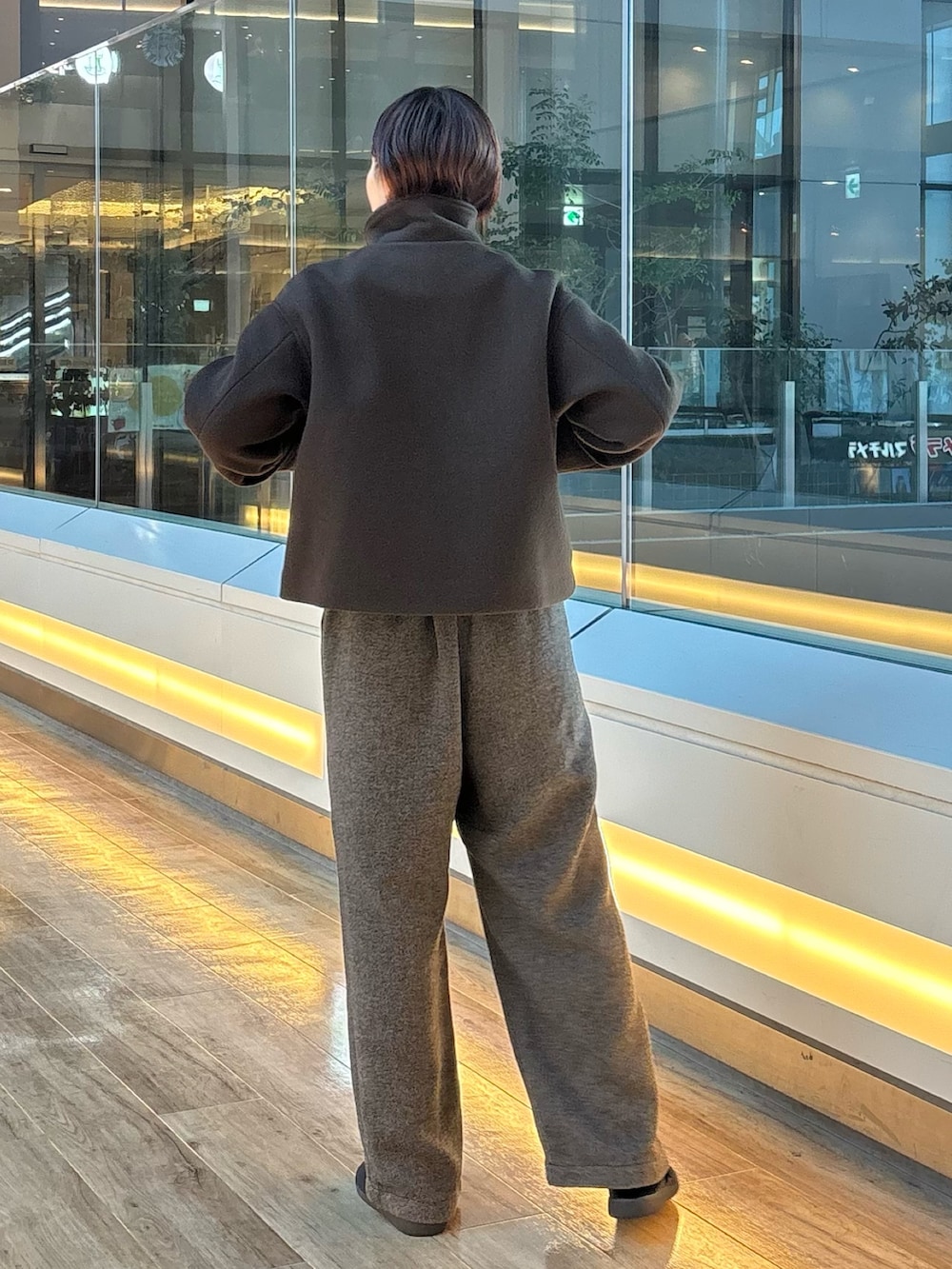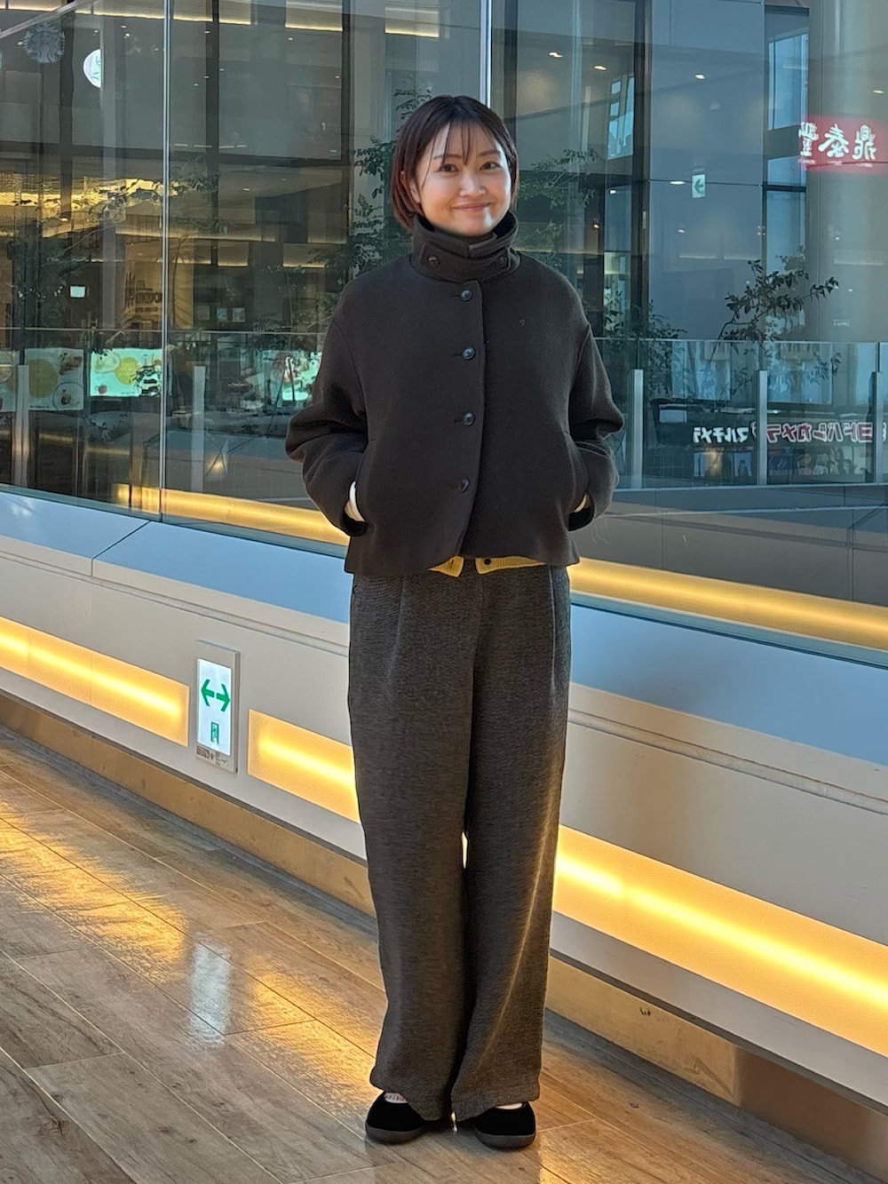 ショート丈なのでワイドなパンツ合わせもかわいいですね☻