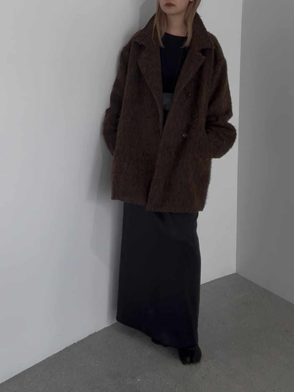 ミドル丈なので、スカートと合わせる時はストレートシルエットのものにするとバランスがとりやすいです!