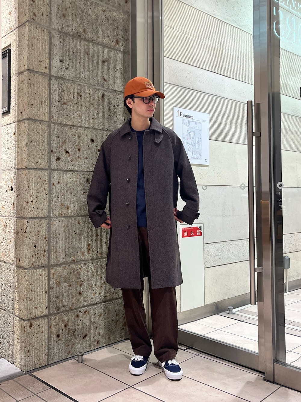 入荷の時から気になってたステンカラーコートに自前のキャップを合わせたコーデです!