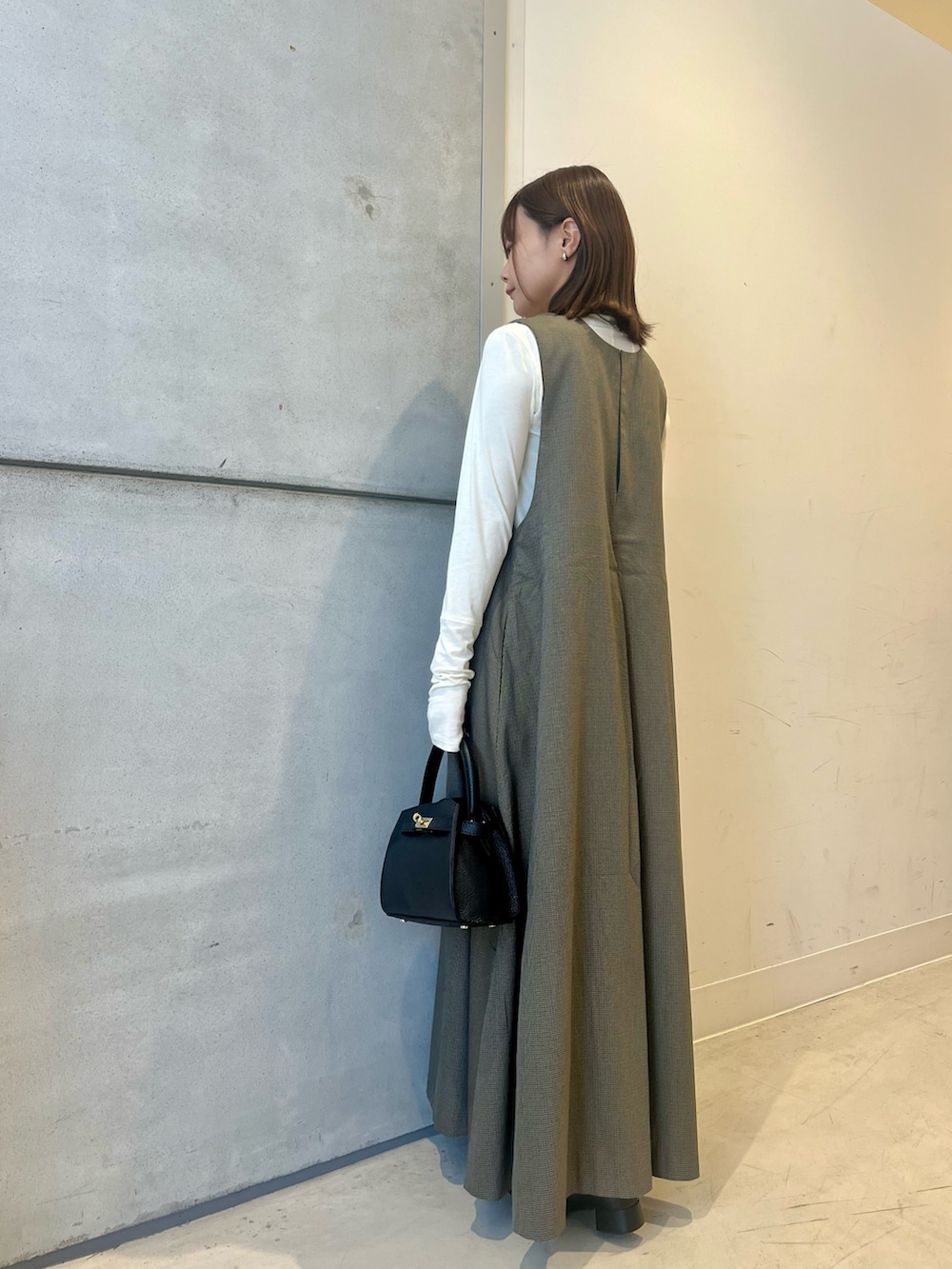 深めのVネックとフレア感が可愛いジャンパーワンピース。