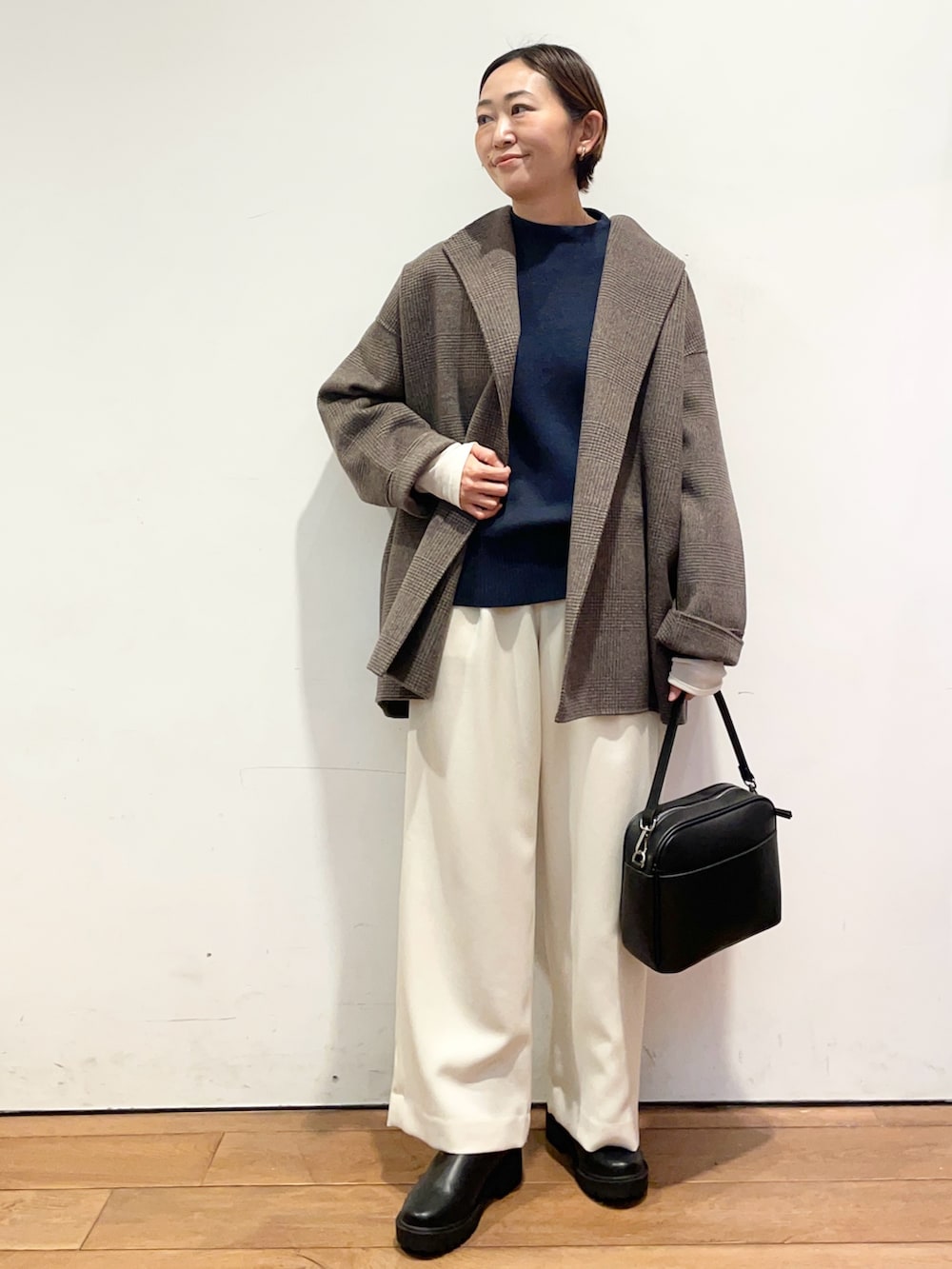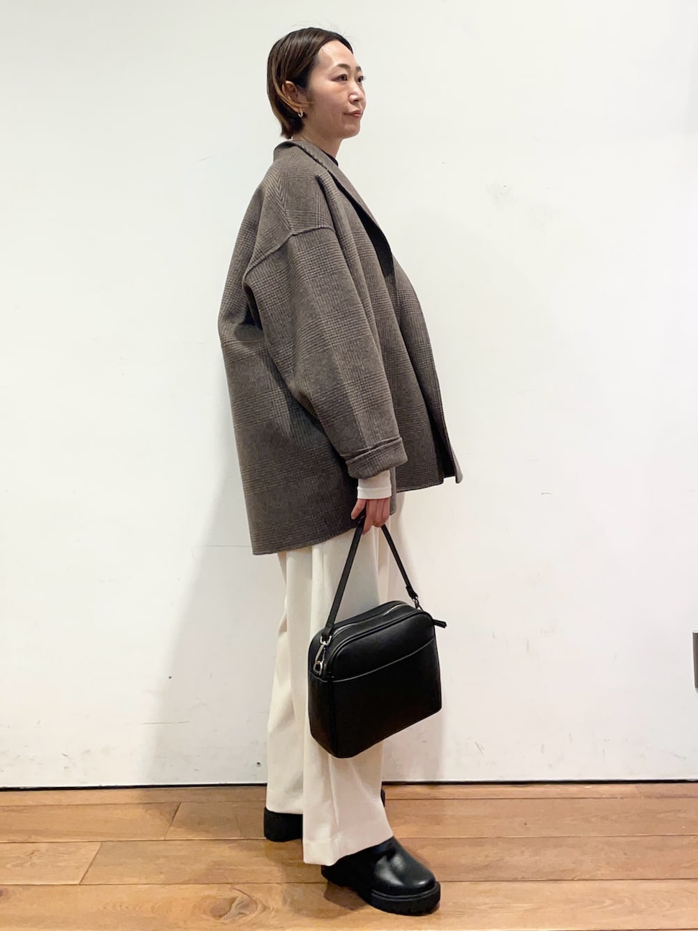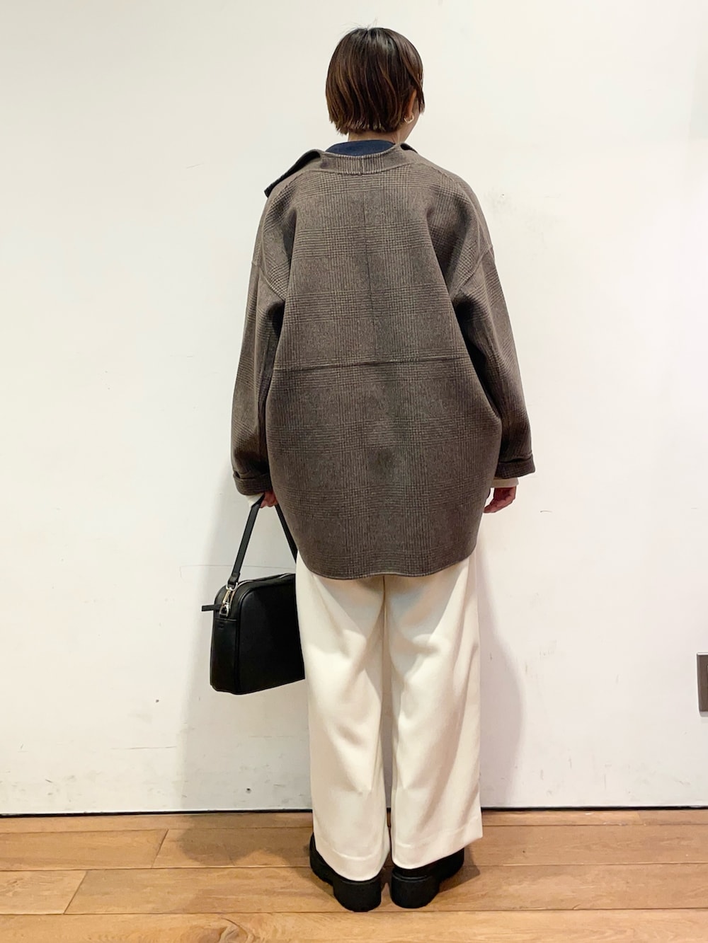 ゆったりとしたサイズ感なので、厚手のニットなど中に着込むこともできます◎