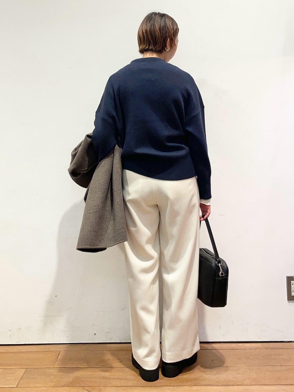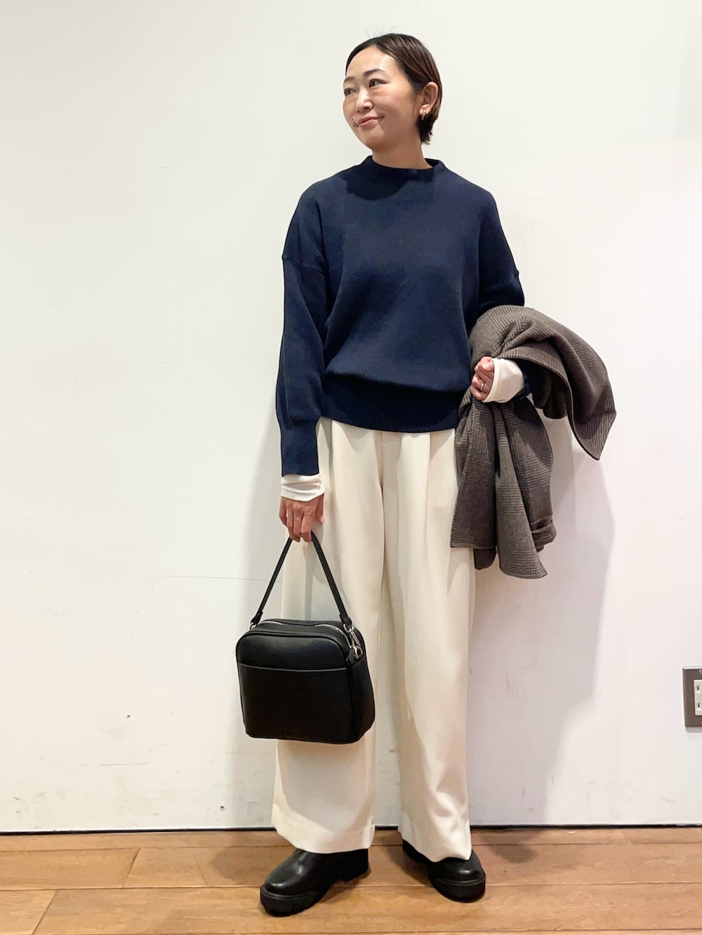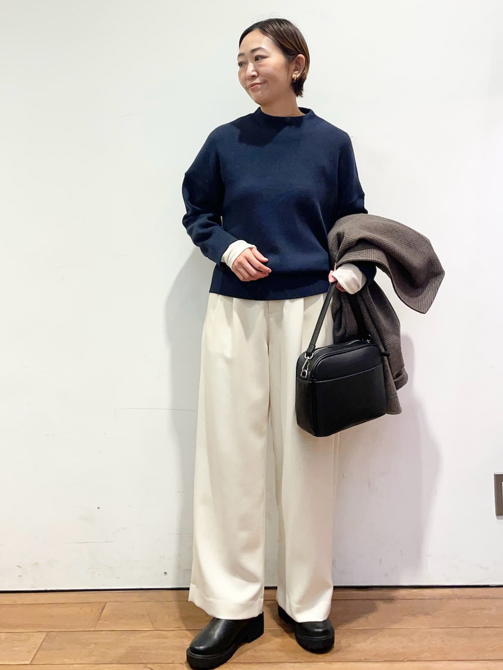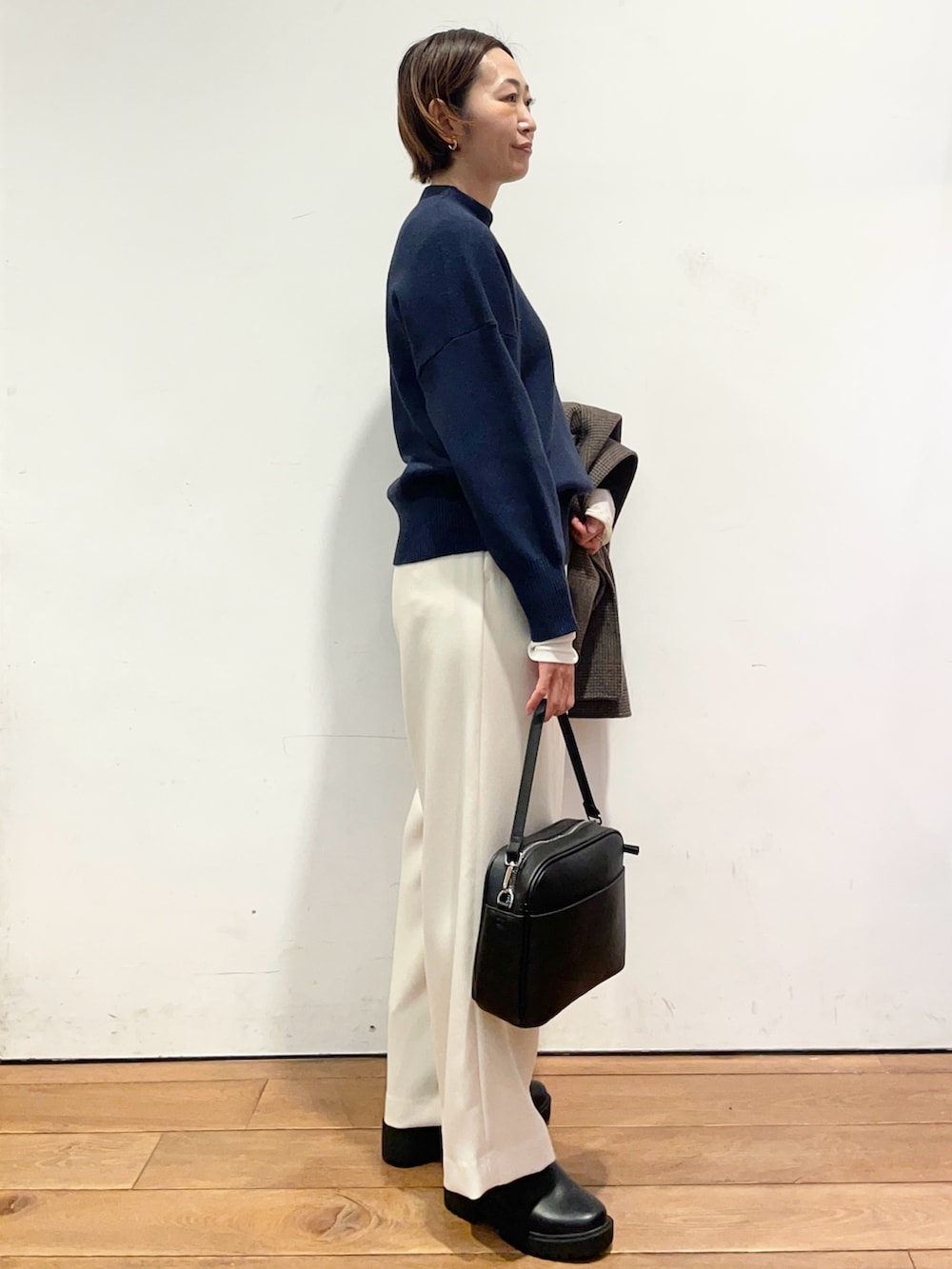 ニットはボトルネックで首周りもスッキリ見せてくれます。