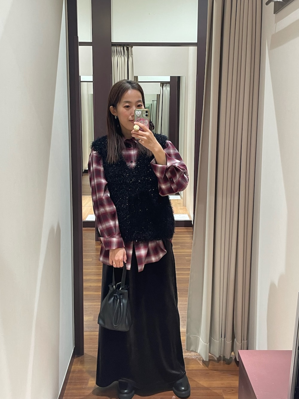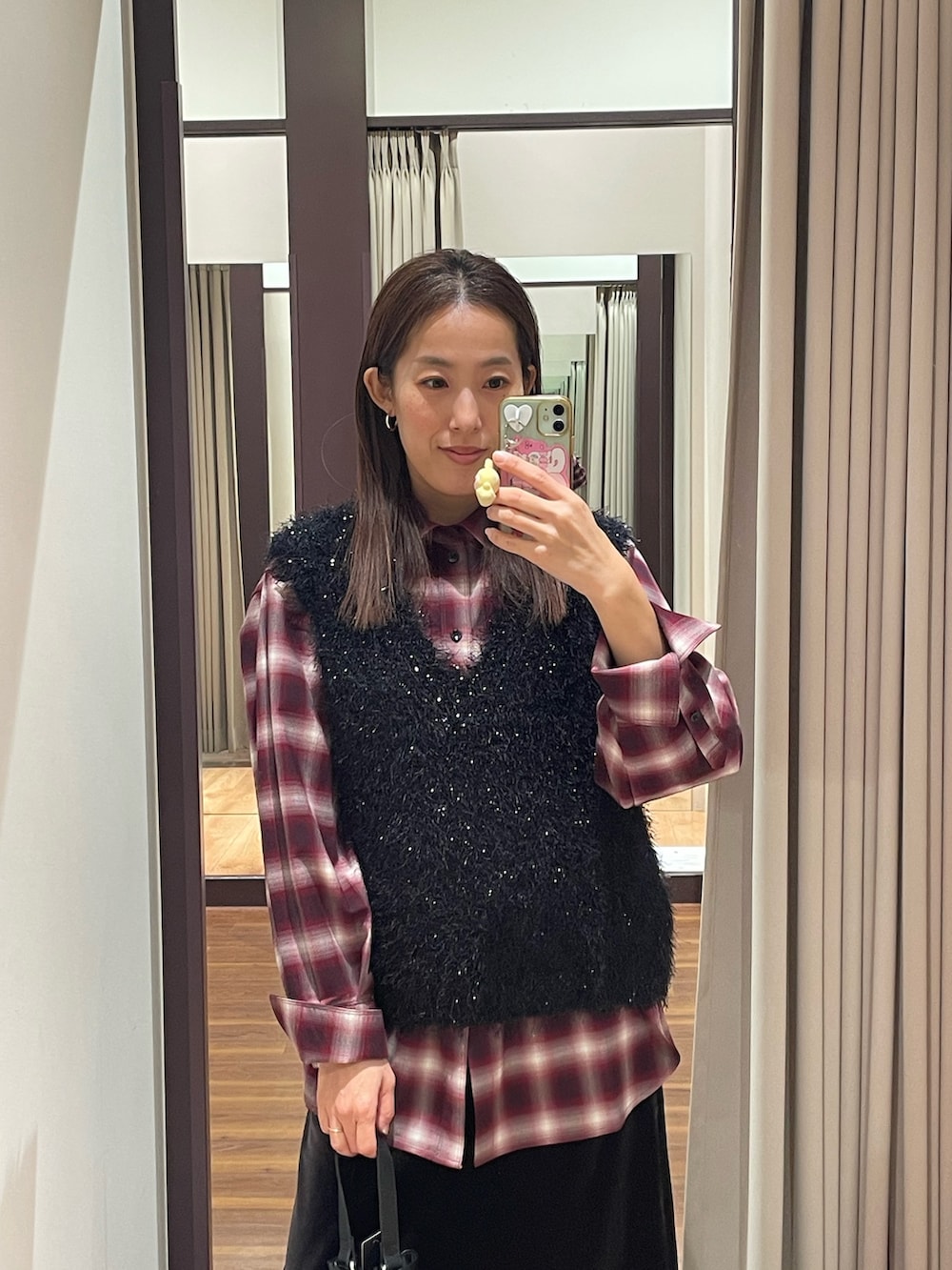 ベストはモールとフェザーを使ったミックス素材でとてもかわいいです♡