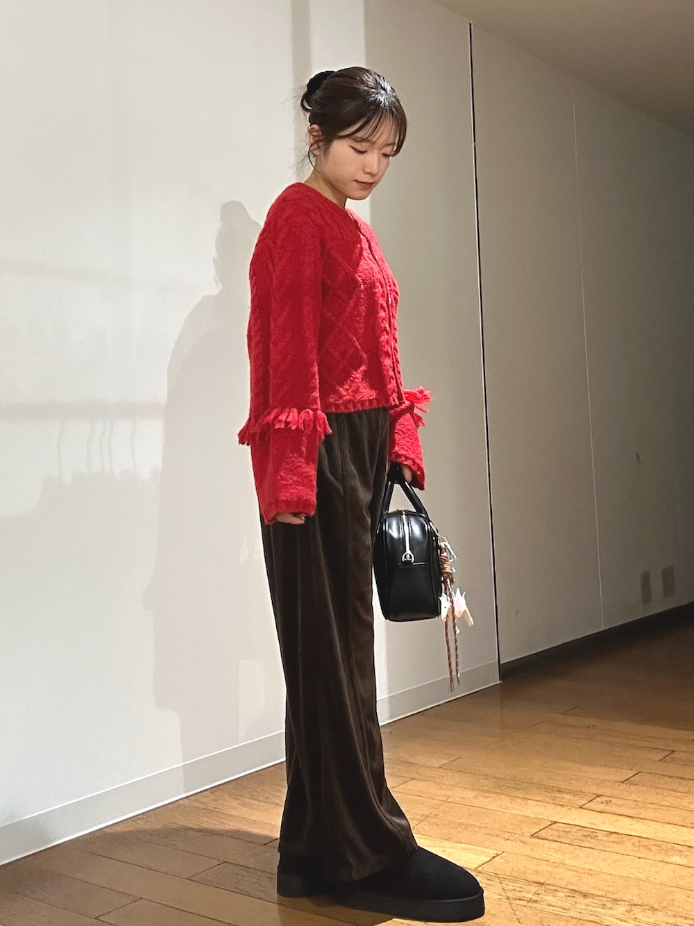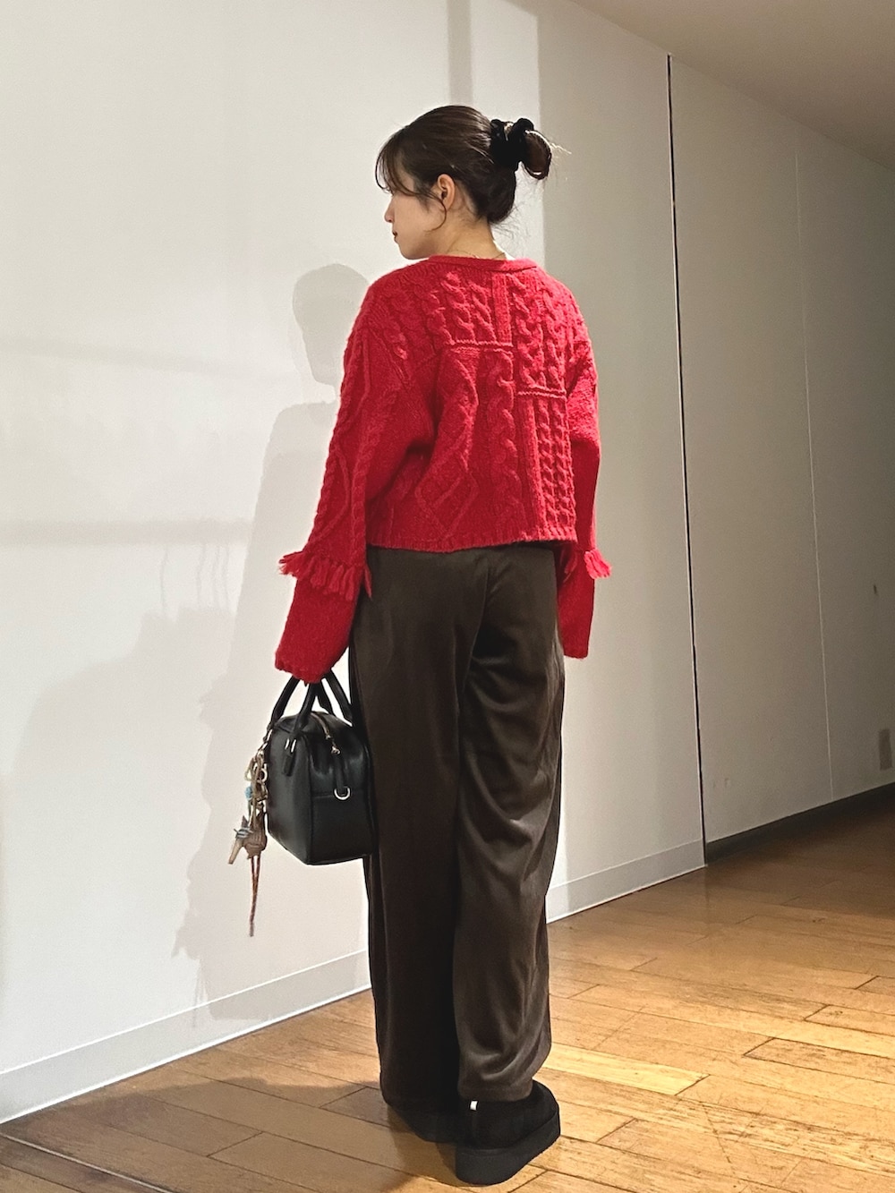 パッチワークデザインとレッドカラーが映える主役級カーディガンです🧶✨