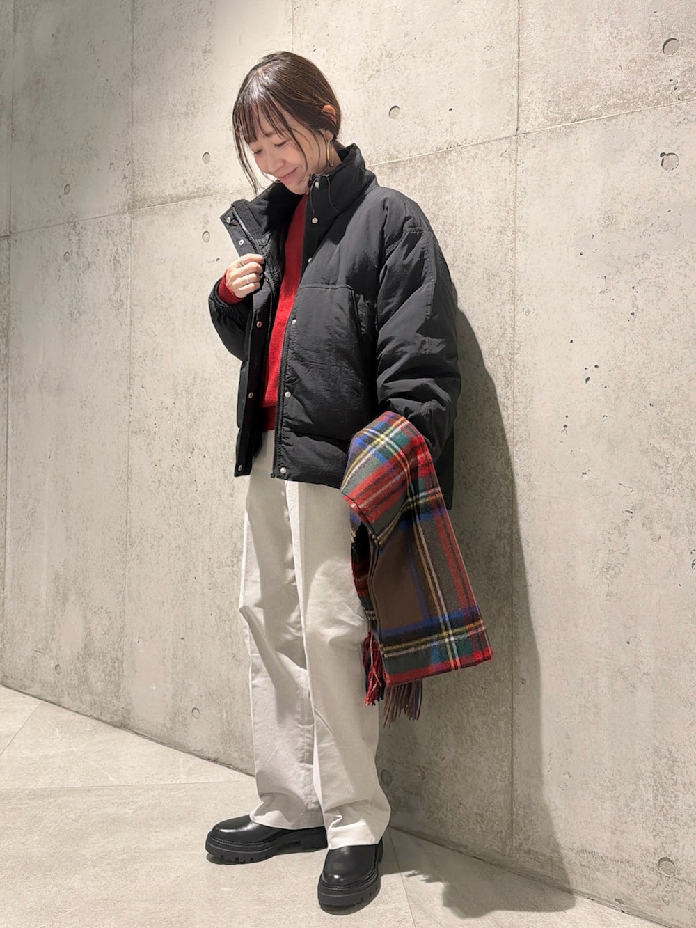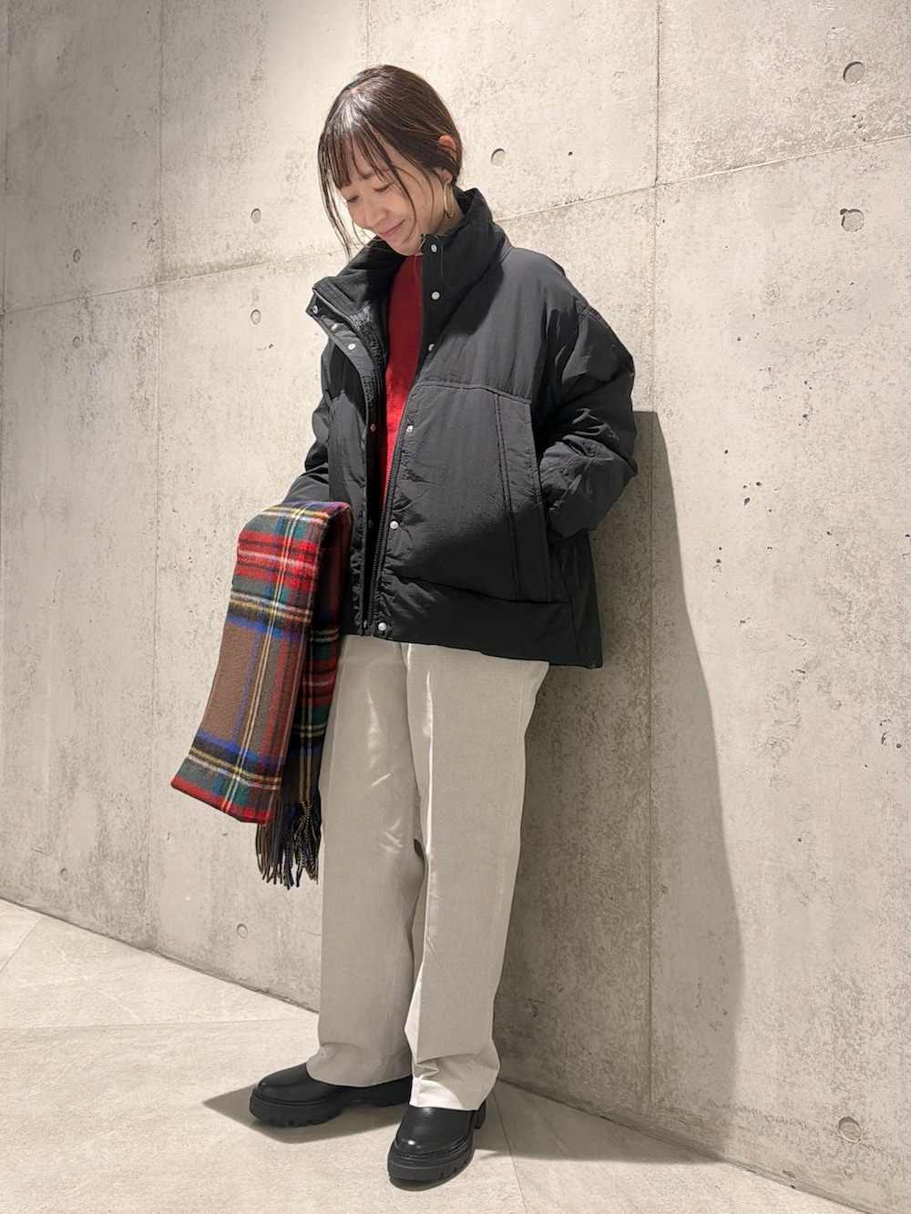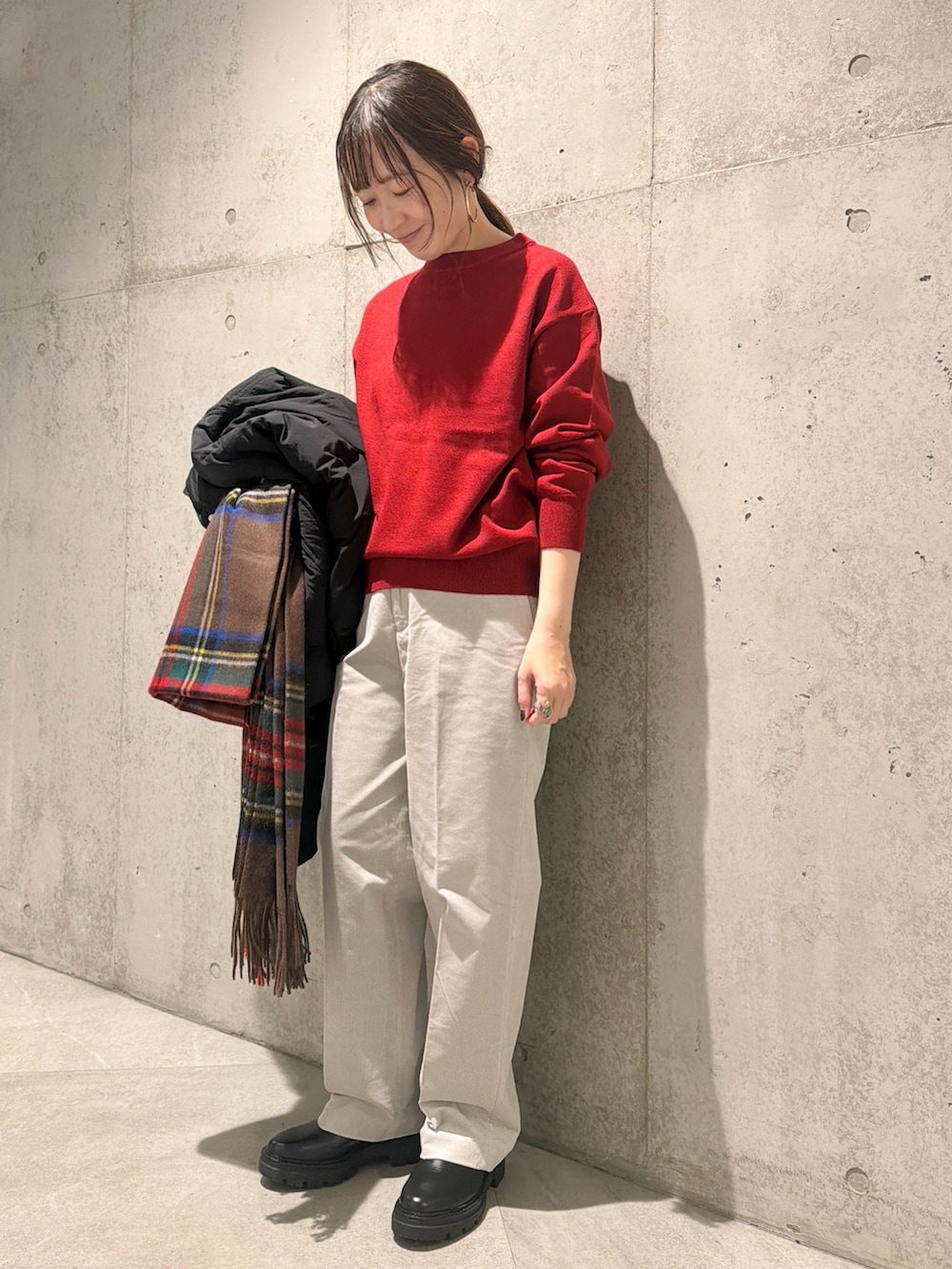 今回は、レッドカラーをアクセントに、コーデュロイパンツを合わせたキレイめカジュアルコーディネートです。
