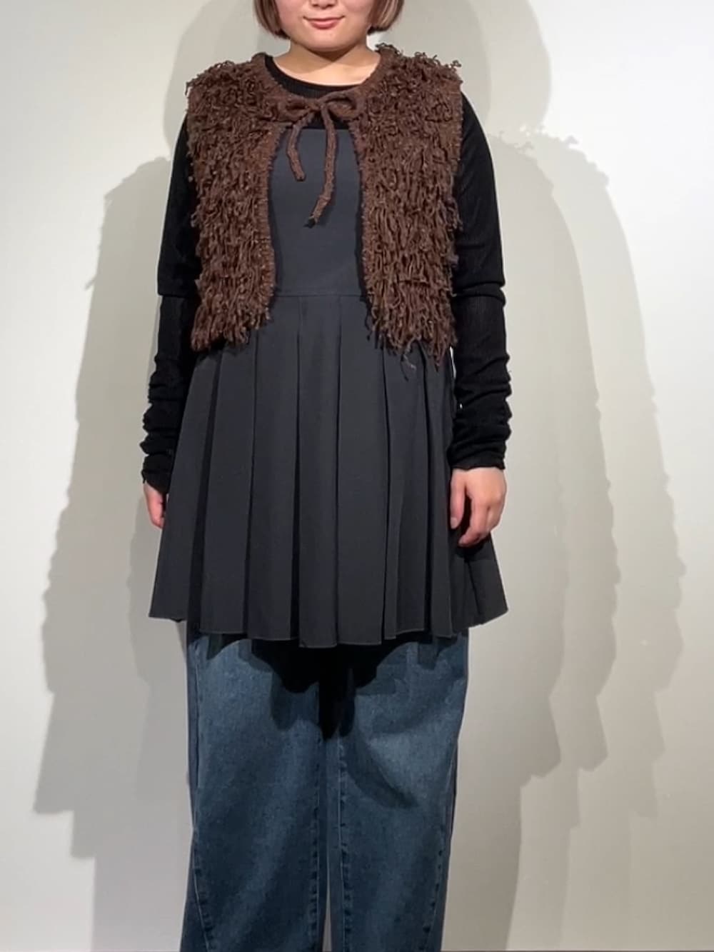 ブラウンのベストとデニムを合わせることで、秋冬感満載☘️☘️