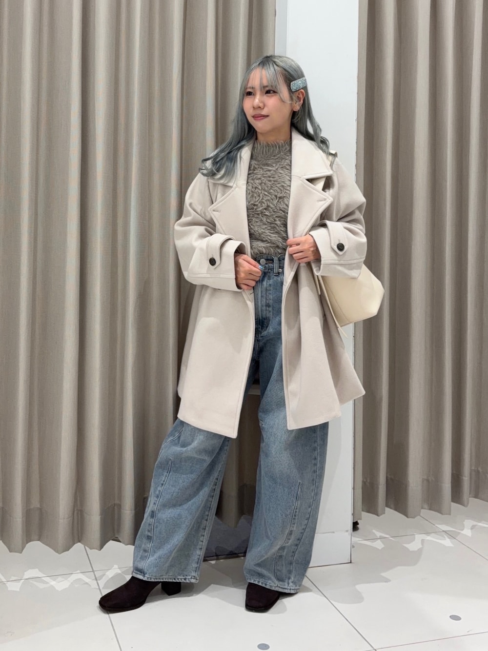 首元はスッキリしているのでハイネックのリブニットをレイヤードするのもおすすめです!
