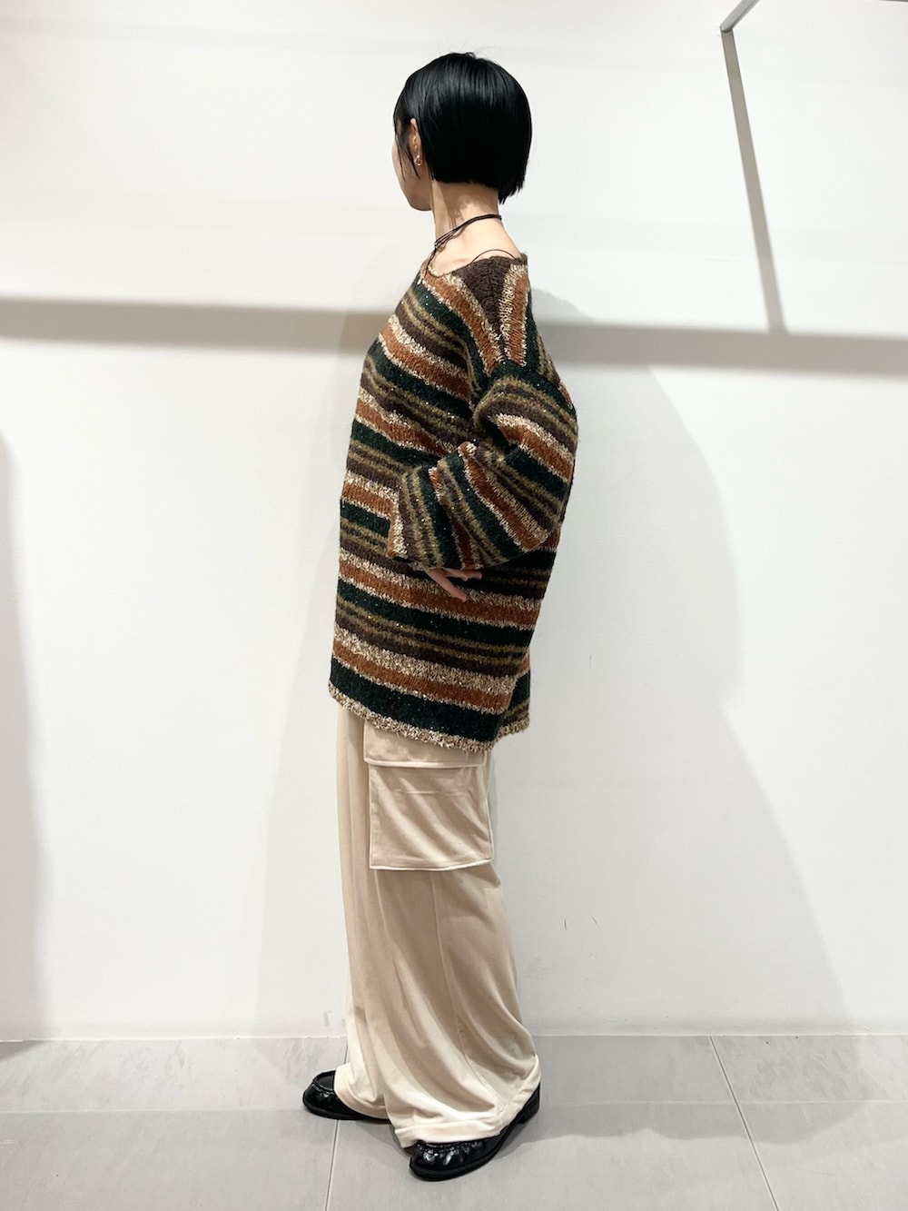 首回りがすっきりしており、大人っぽくきられます!ベロアカーゴはアイボリーにして軽い印象にしました。