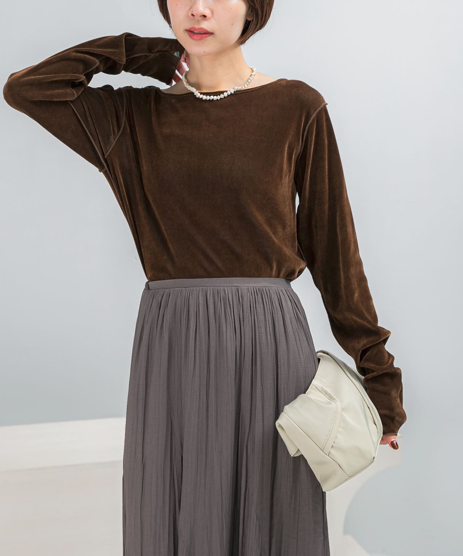 シアーベロアシームデザインプルオーバー