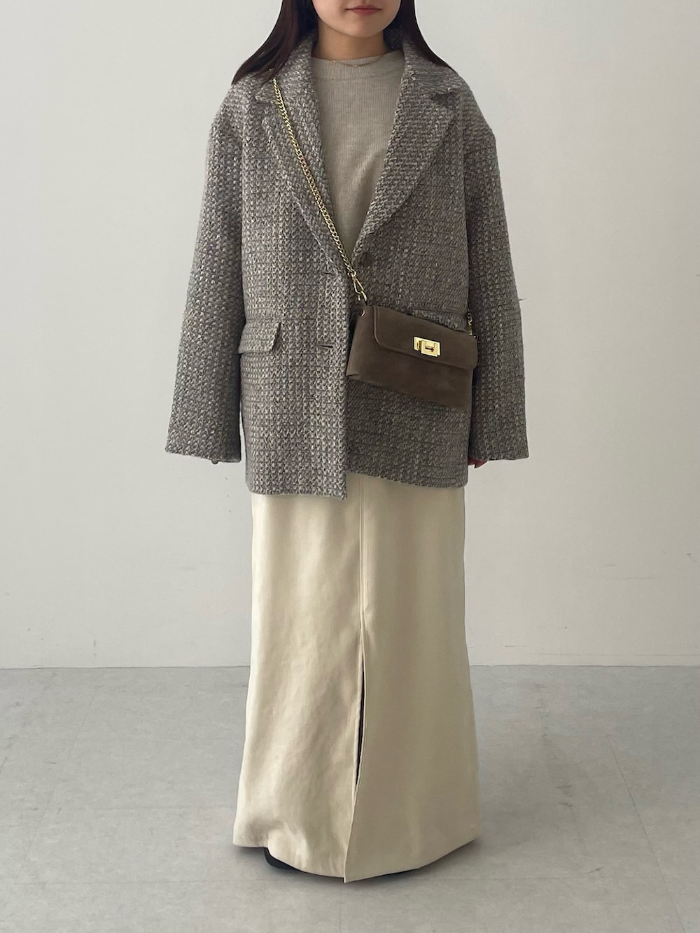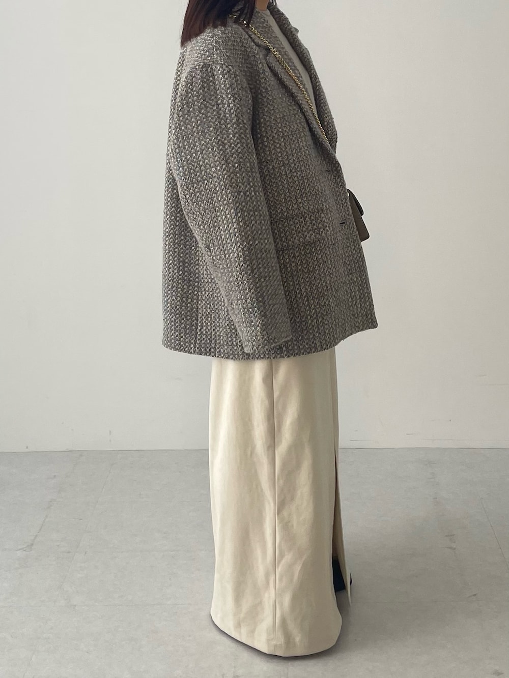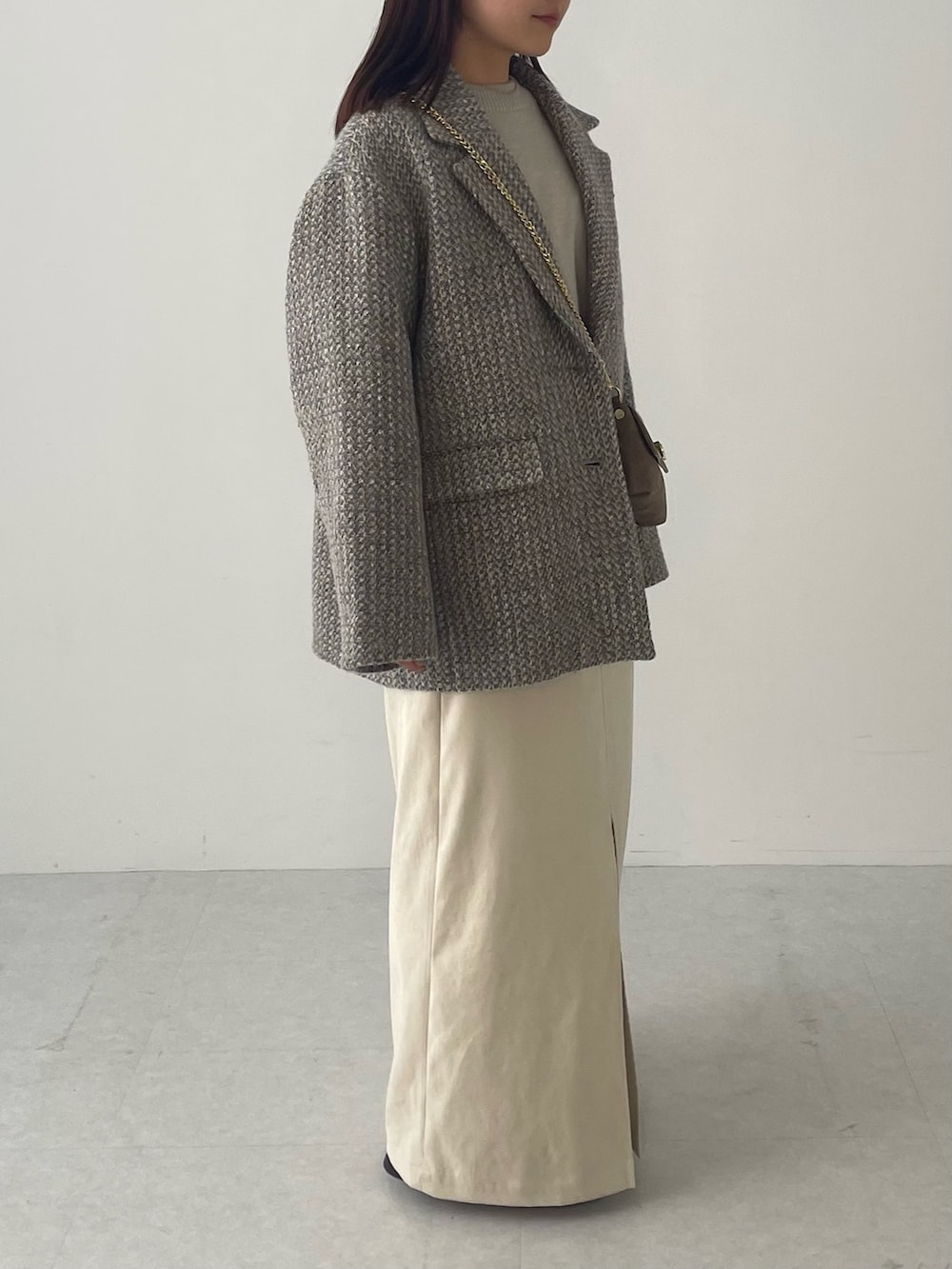 このツイードジャケットは湿気を吸収して熱に変換されるURTECHの素材なので想像以上にあったかいです!
