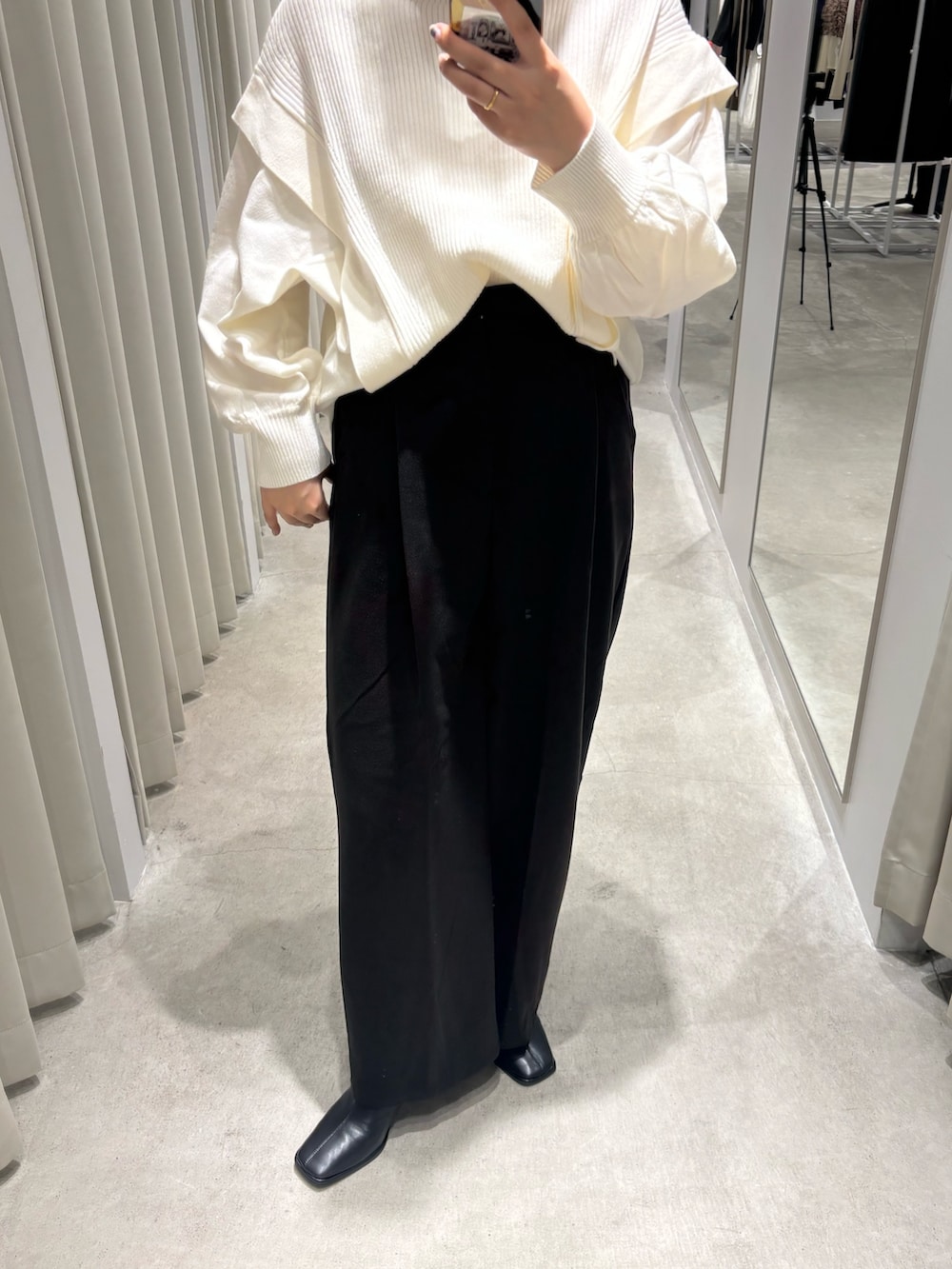 少しハイウエストな作りのこちらのボトムスは、生地感が秋冬仕様でマットな質感です!