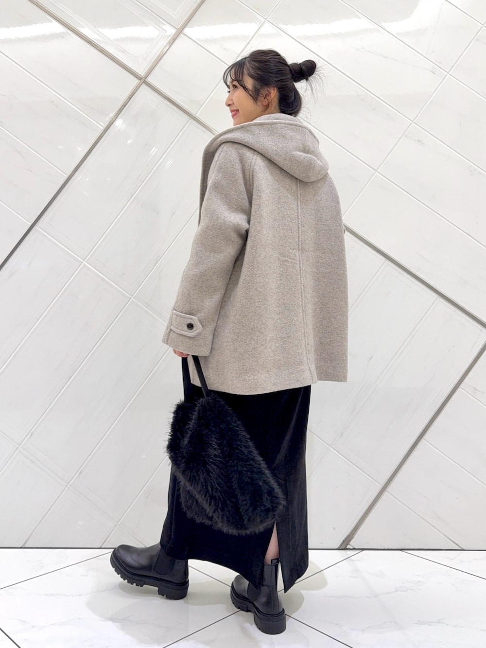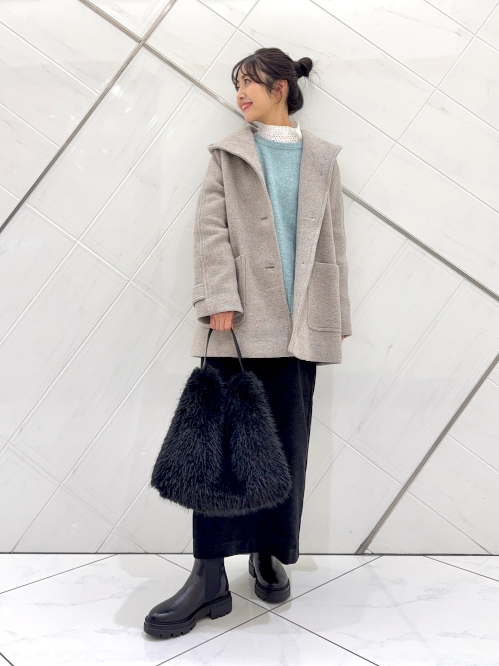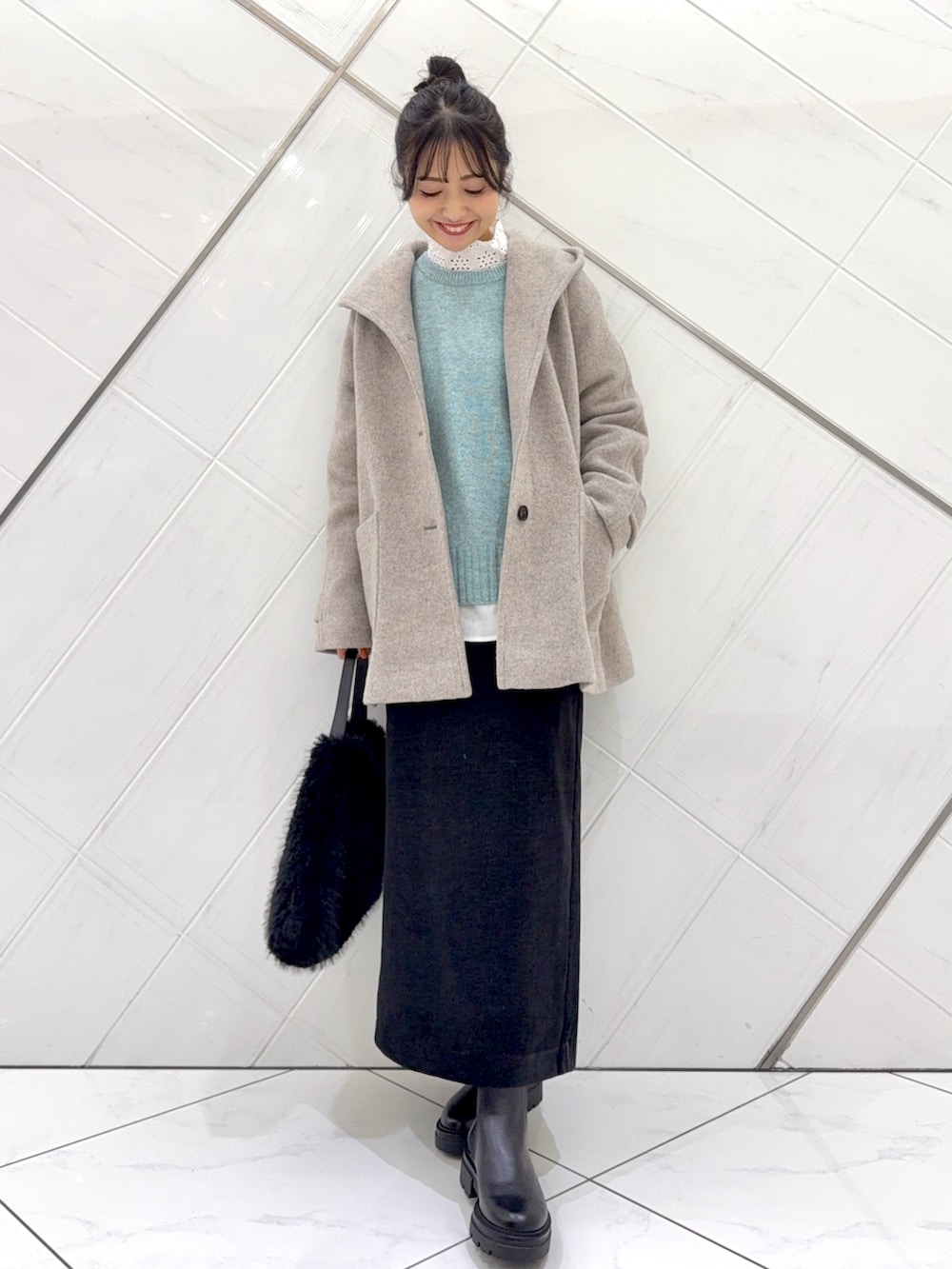 見た目以上に軽くてびっくりしたんですが、裏地も付いているので暖かく、ニットの上からすっと袖通しもしやすいです。