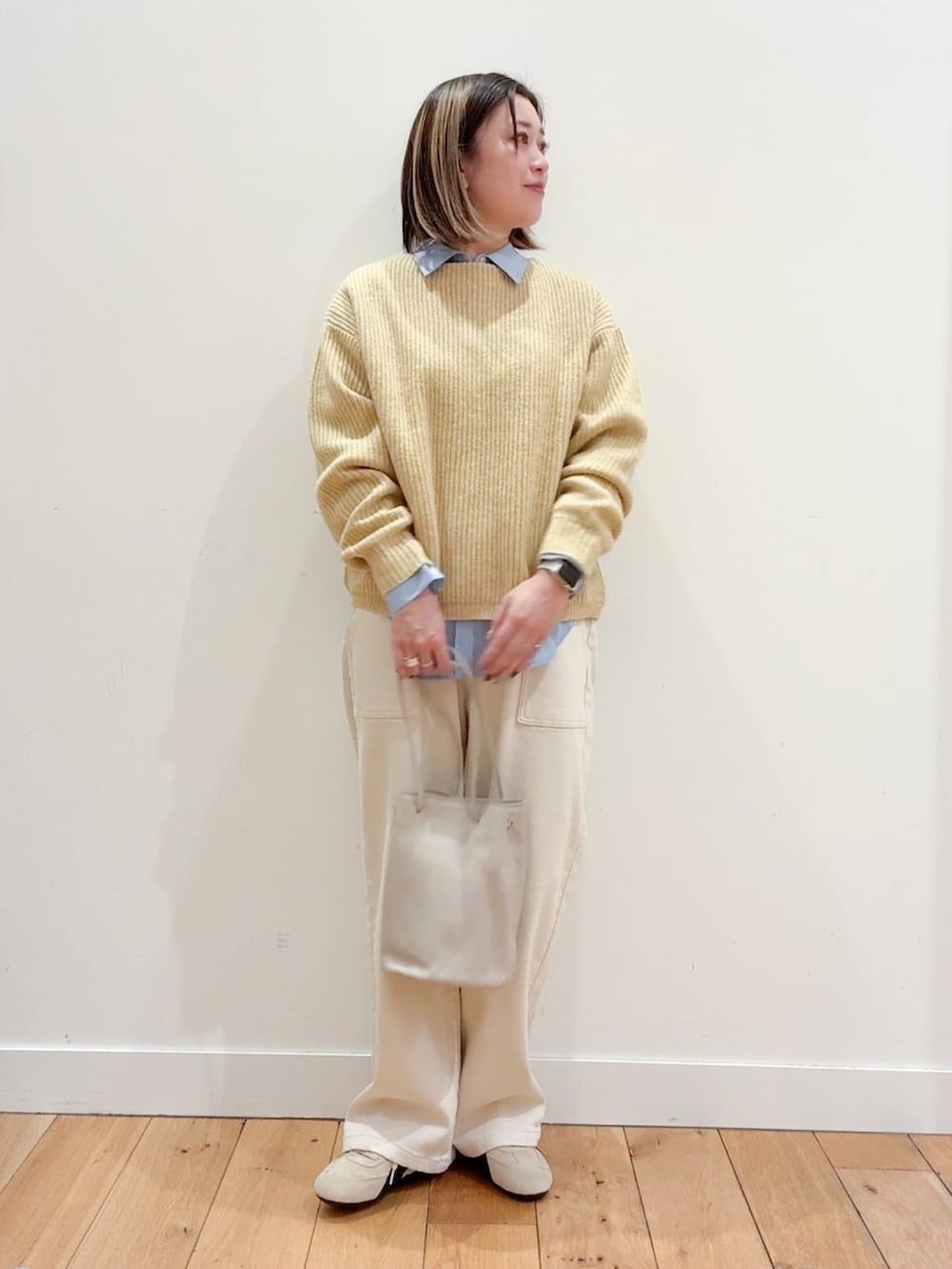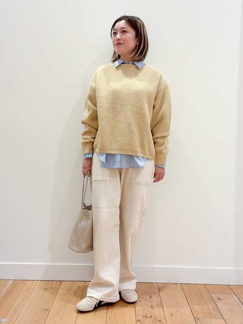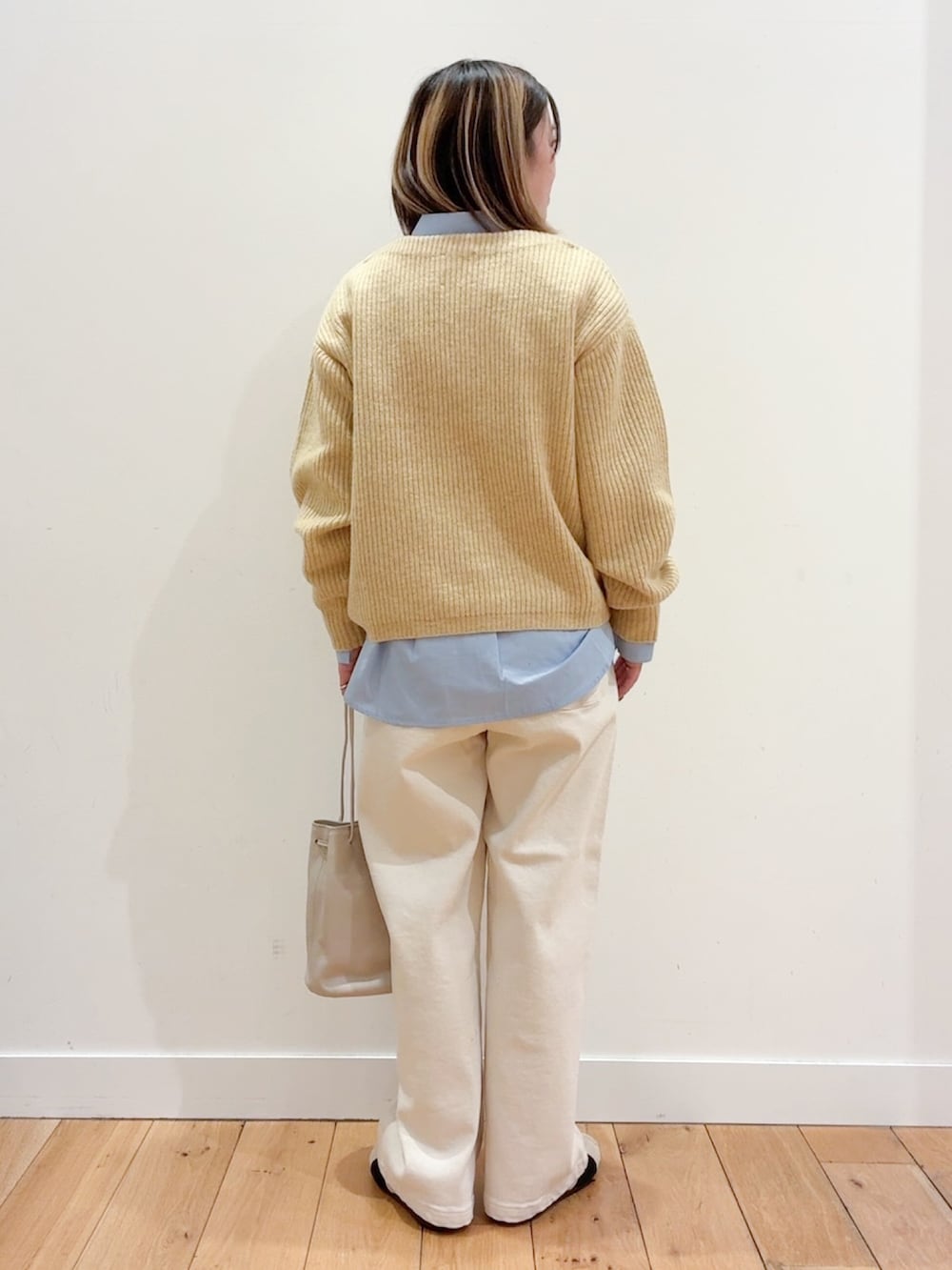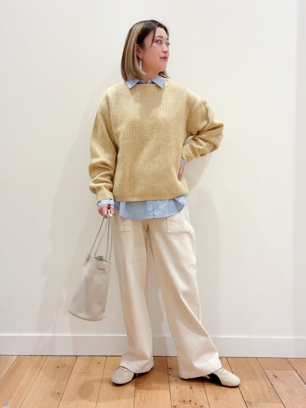 今回はシャツをレイヤードして差し色に