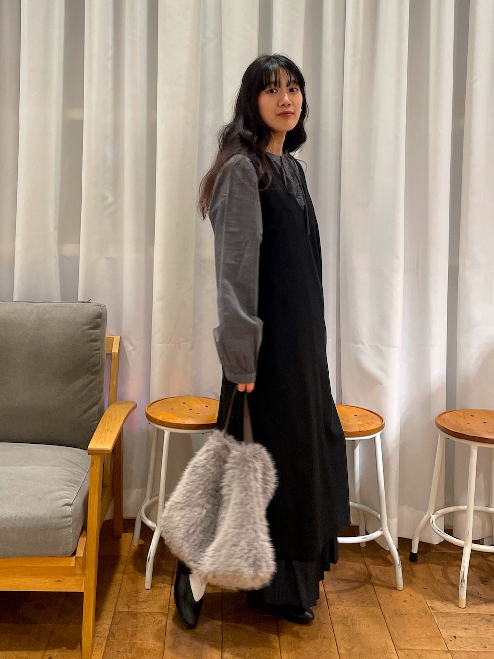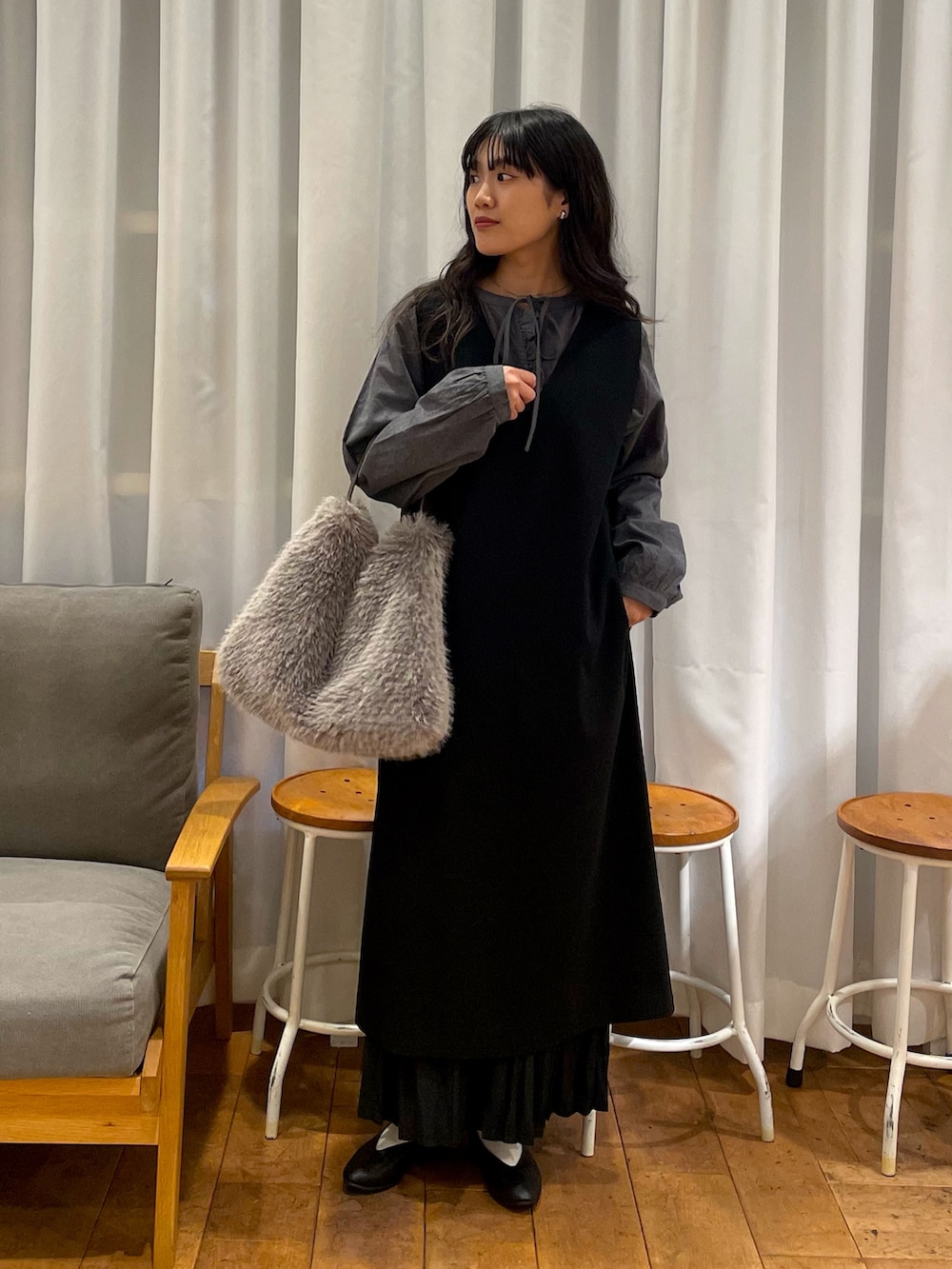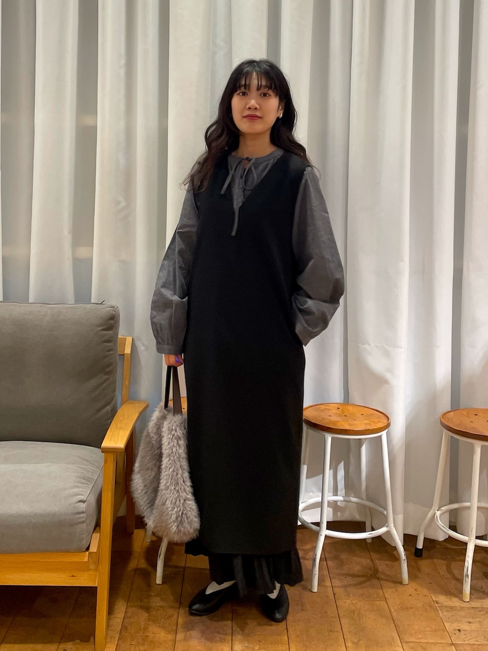今回合わせたフリルリボンブラウスともよく合います!ブラウスはチャコールが大人可愛くて気分です🫶🏻