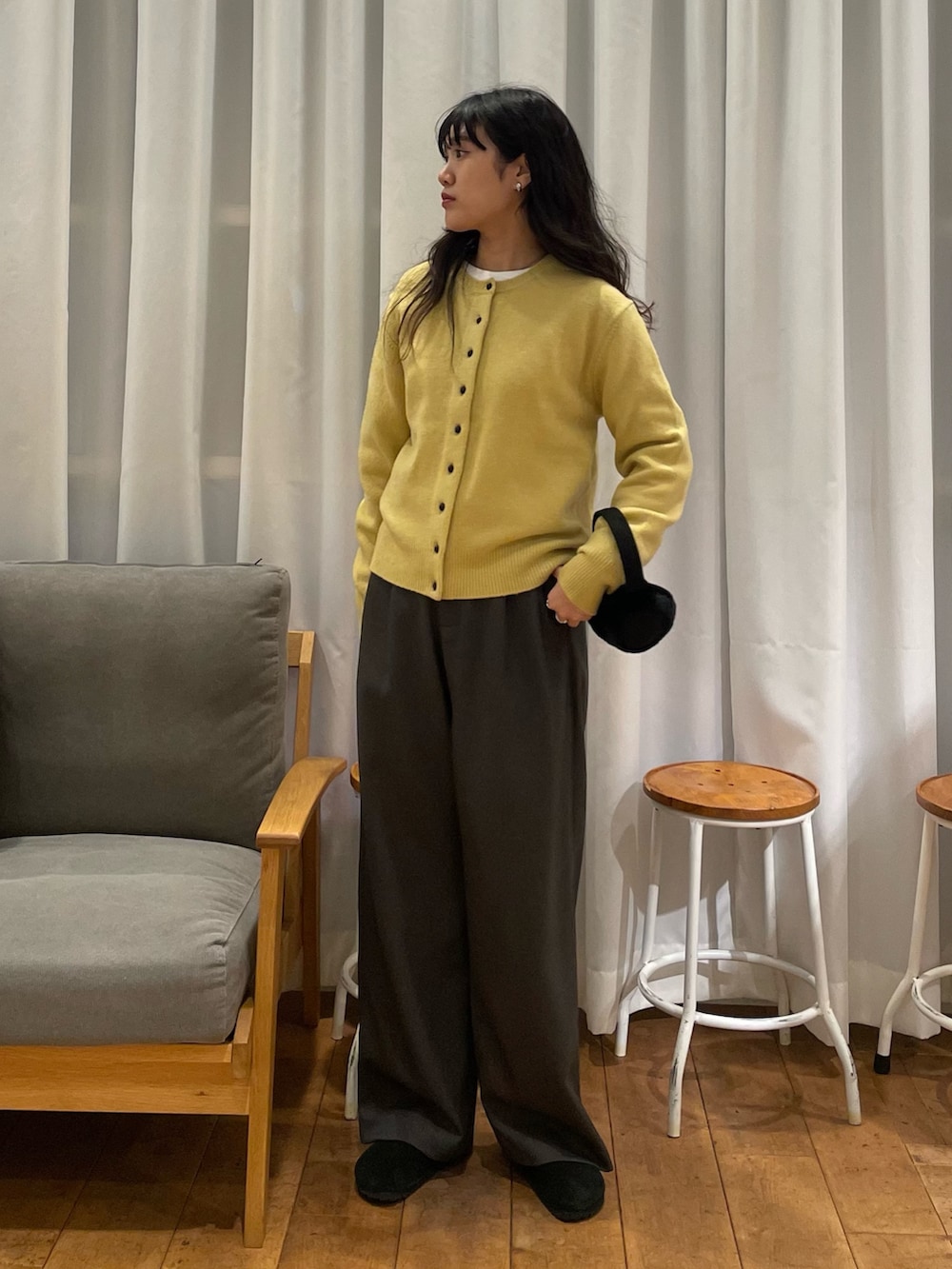 また、中に着たイエローのニットカーディガン!!!