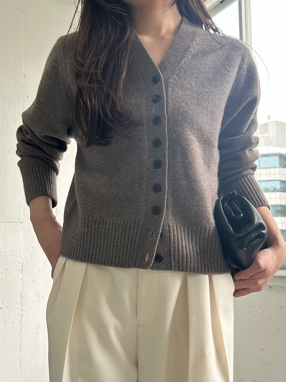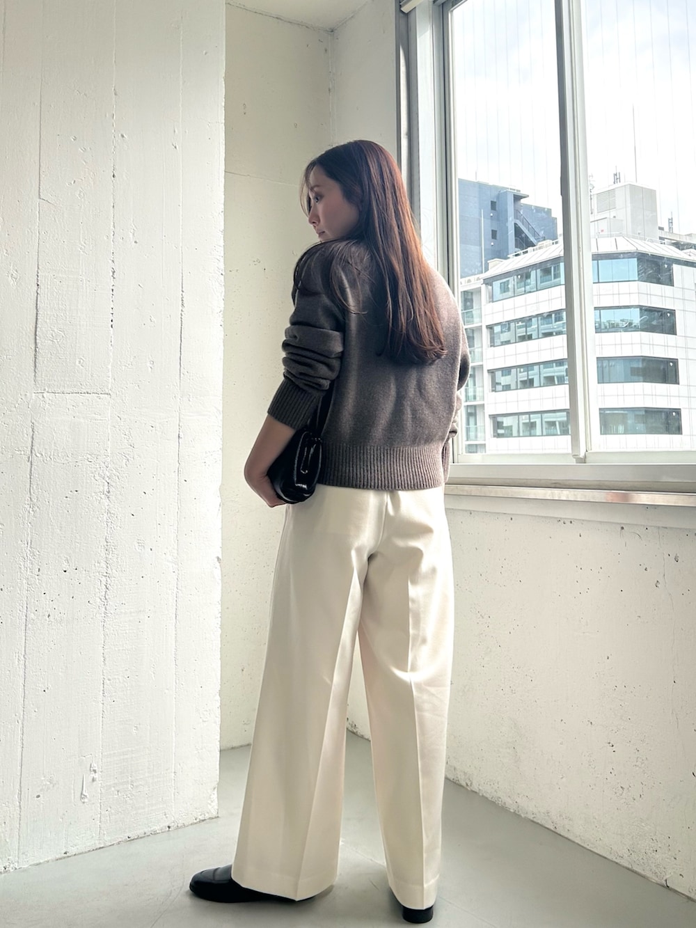 着膨れしがちなニットもすっきり着れます。