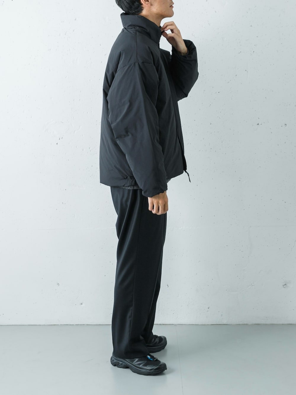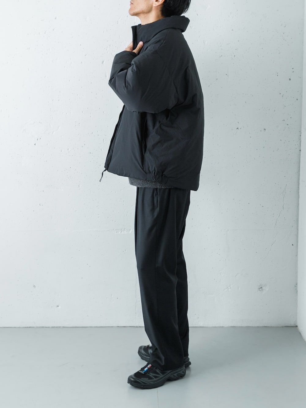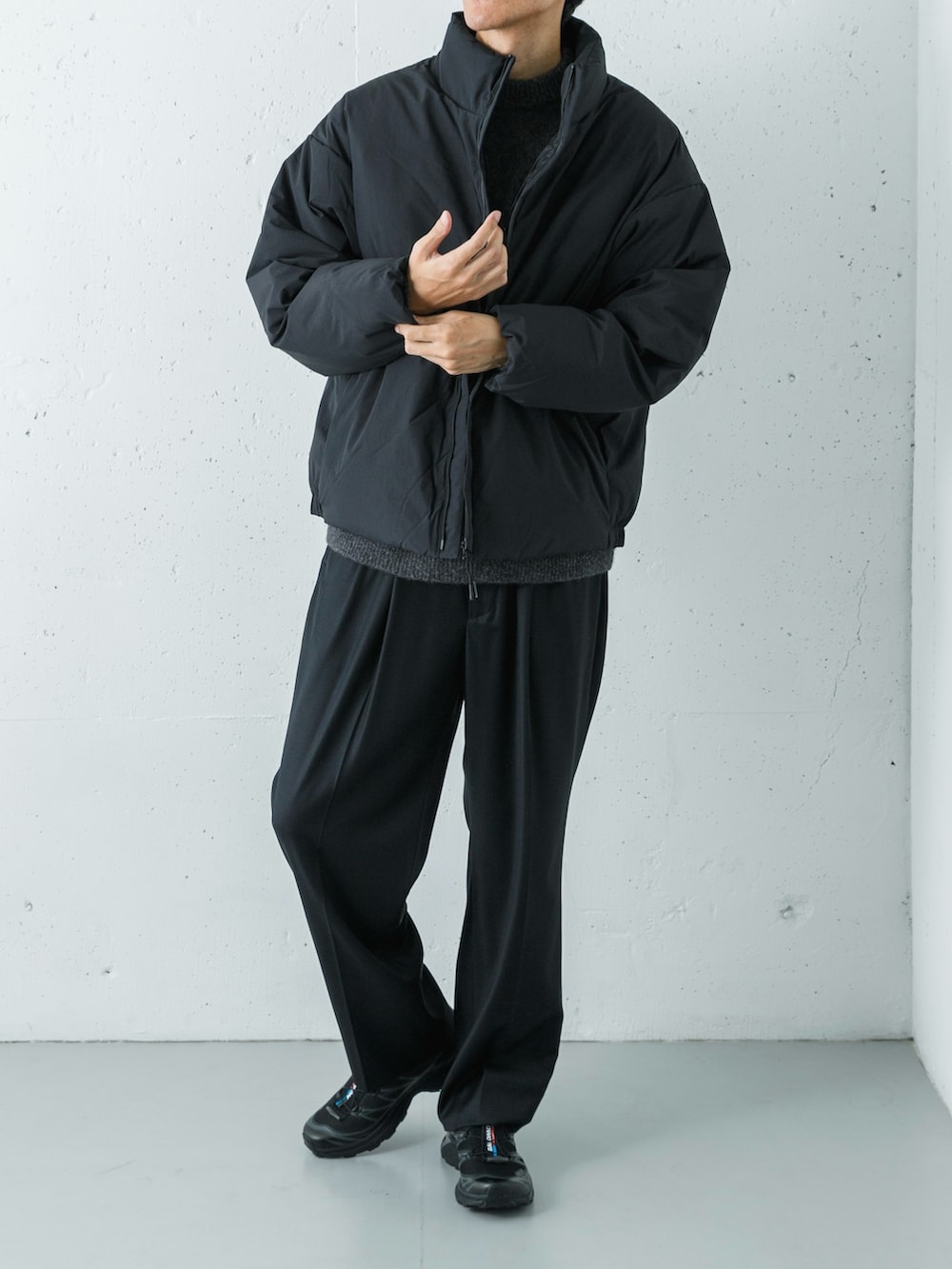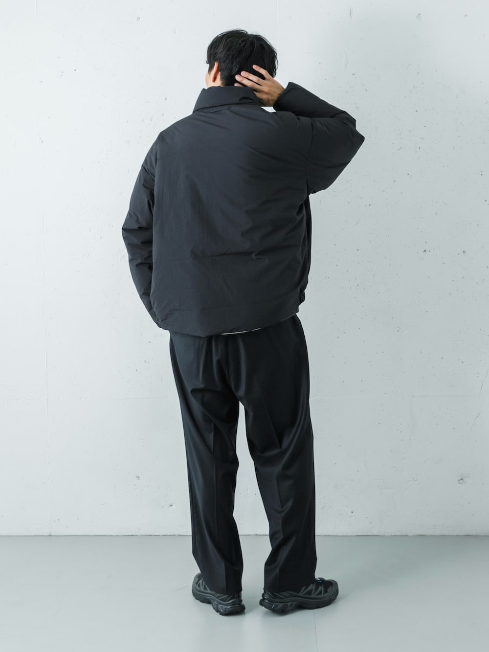 ボトムスには落ち感のあるウールシルク混のパンツを選び、カジュアルなダウンを品の良さで引き締めます。