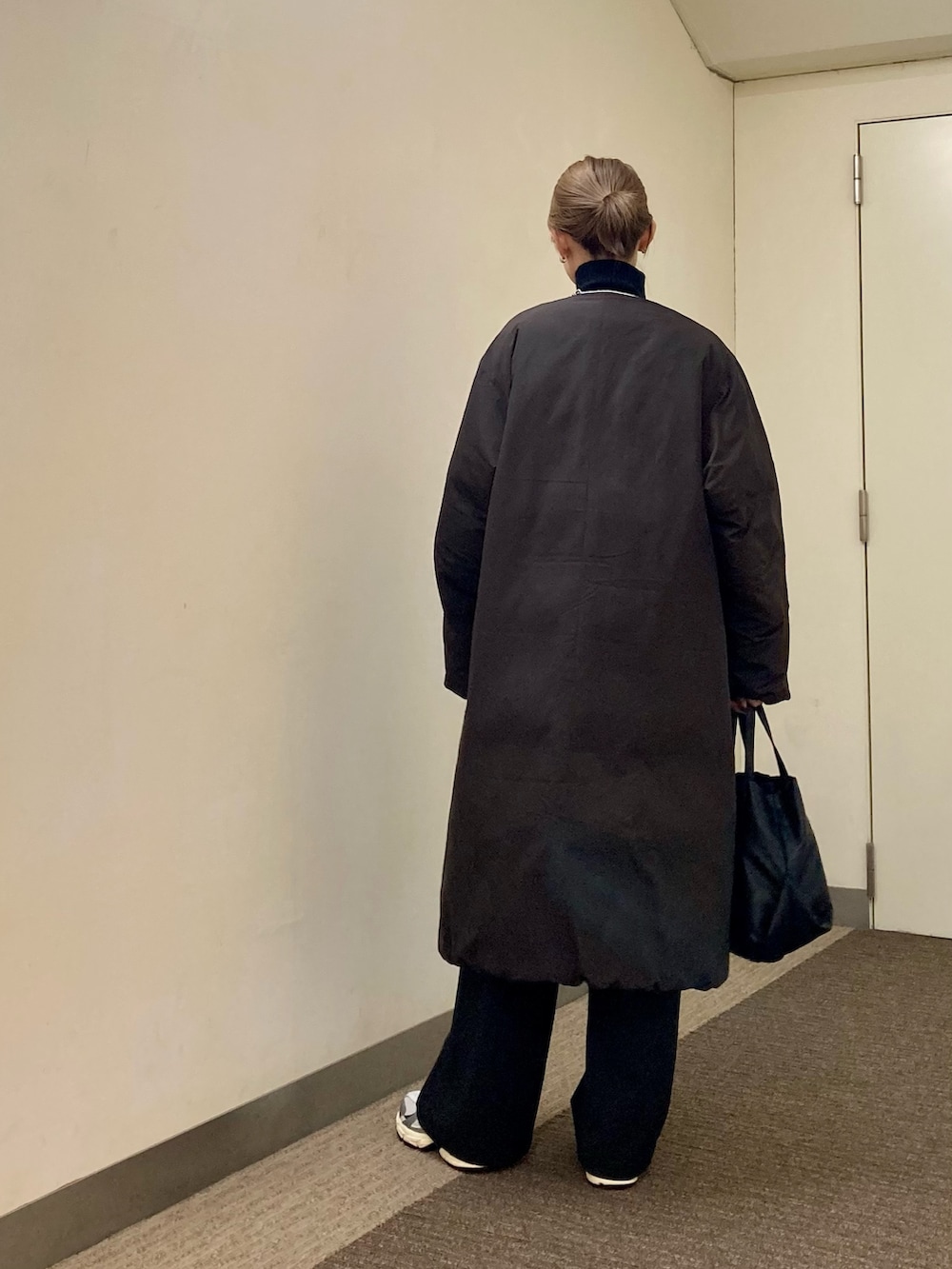 ノーカラーのコートにはハイネックを合わせるのが好き。