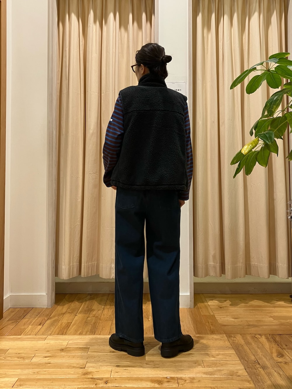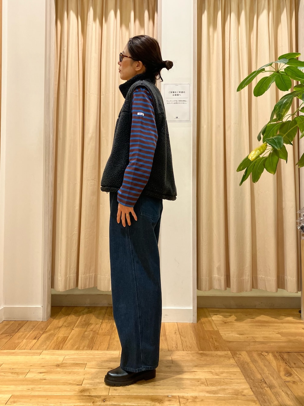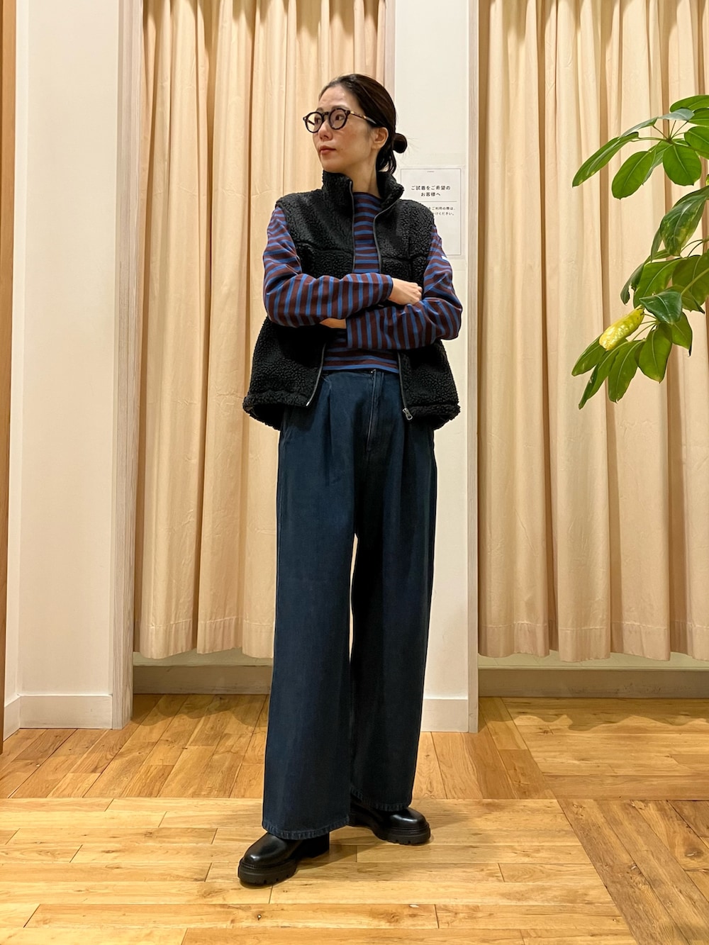 履いているデニムは裏起毛のあったかデニム◎タックが入っているので気になるお尻周りはカバーしてくれ、程よいワイド感が◎