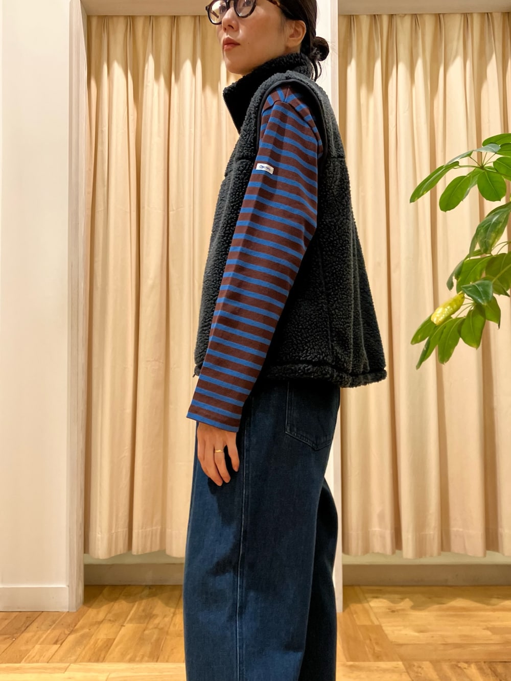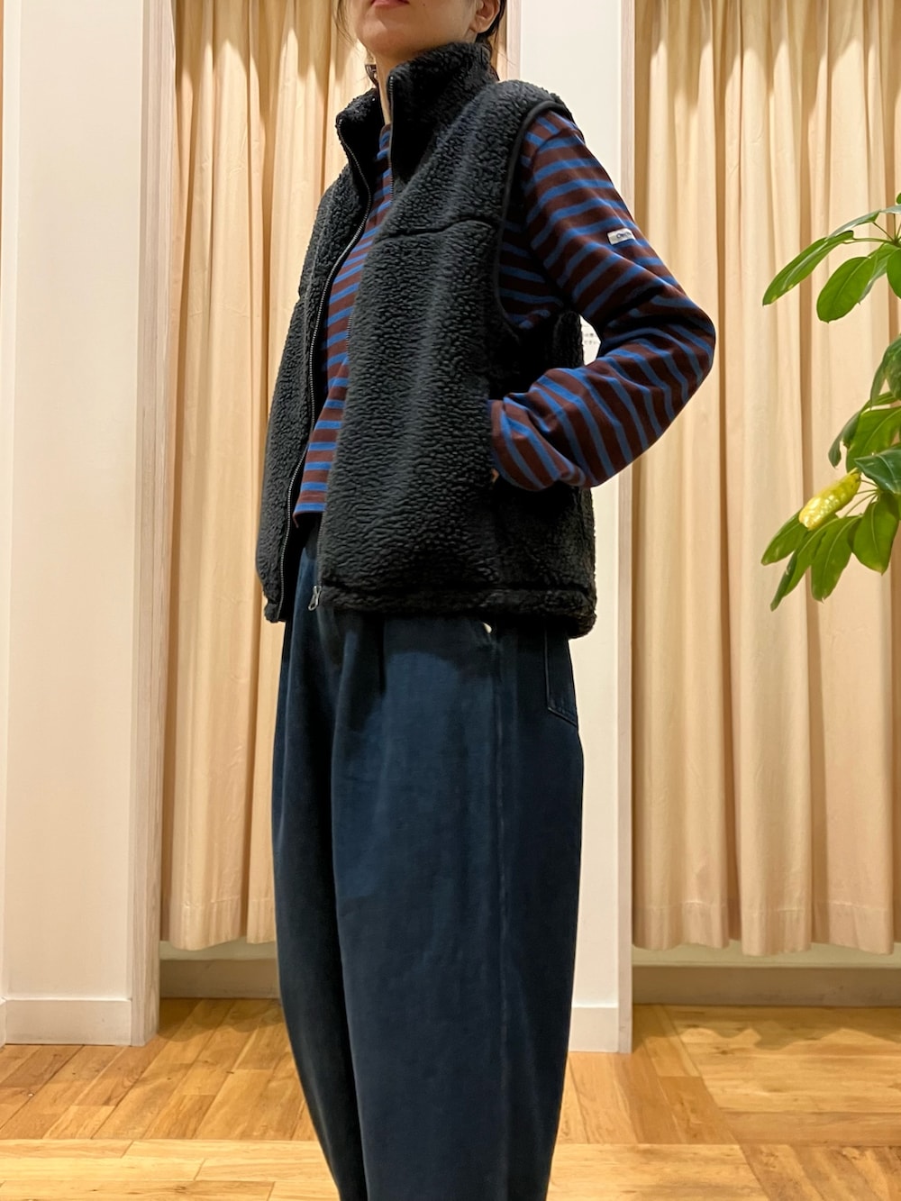 冬はコートのライナーとしてもお使いいただけるボアベスト。気温が安定しない今の時期にも便利なアイテムです!