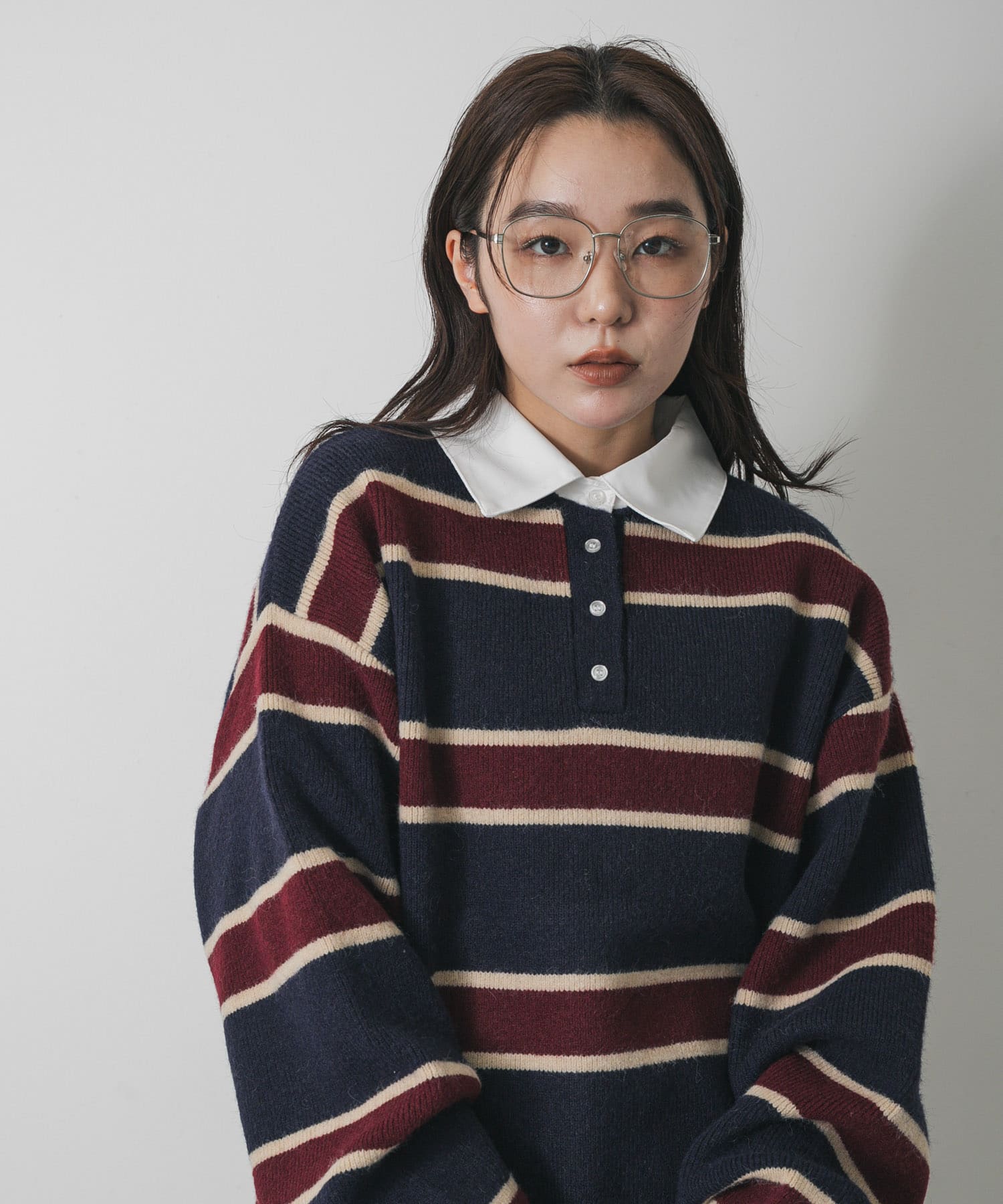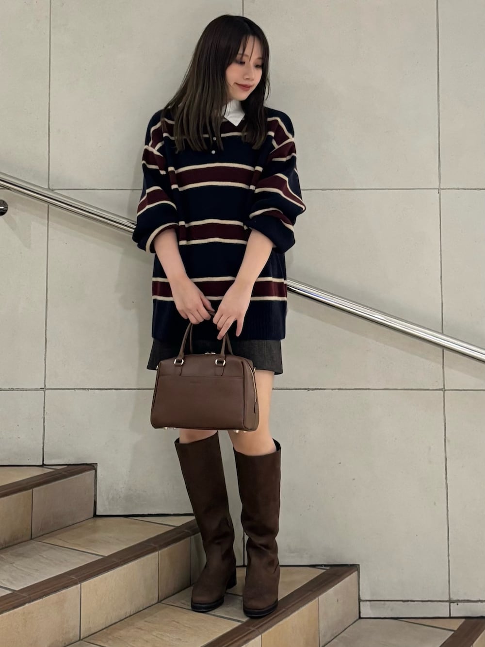 ニットはゆるっと感があり、女性らしいアイテムと組み合わせるのがオススメです!