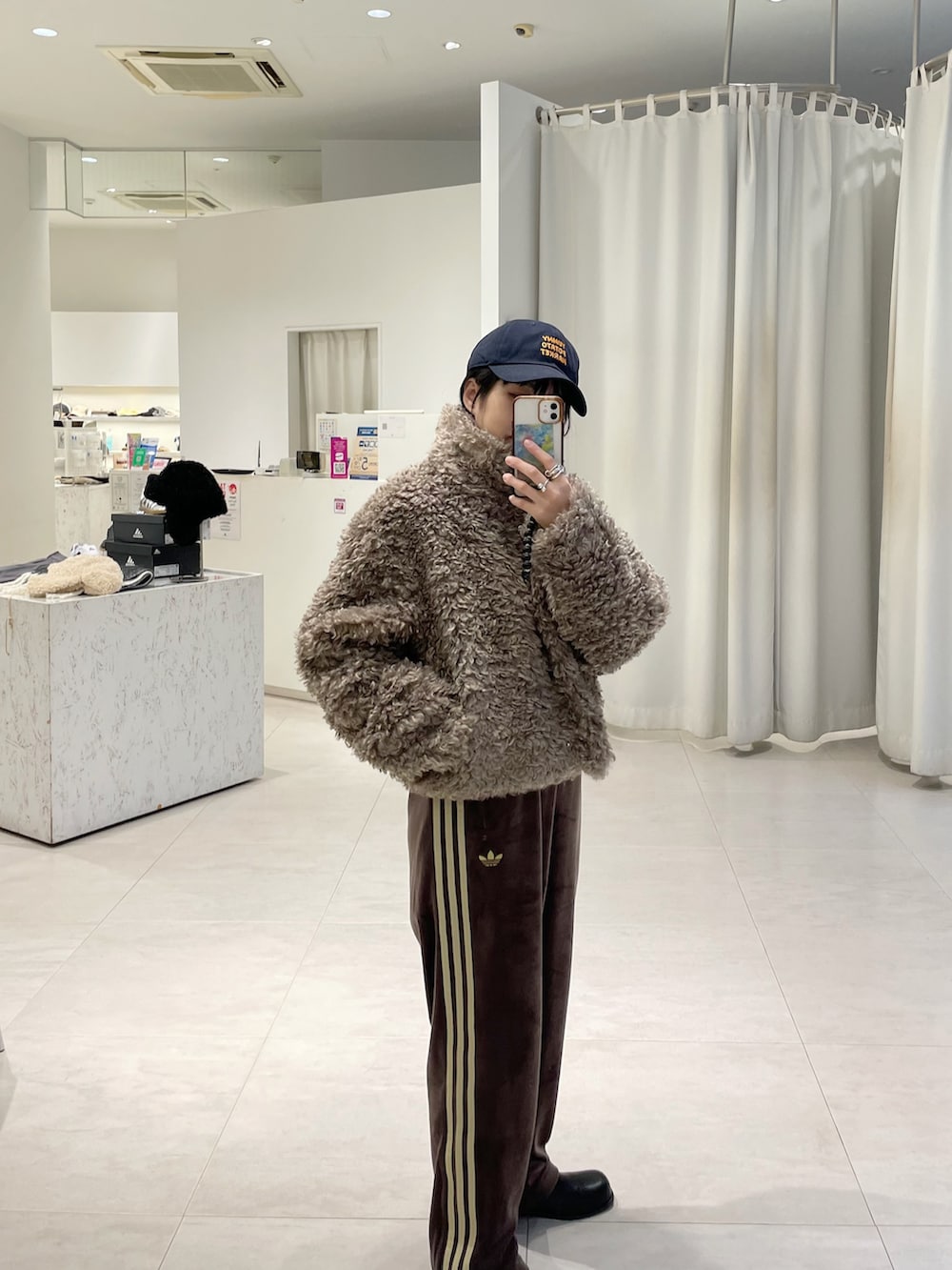 adidasのベロアパンツと合わせてカジュアルにまとめました。