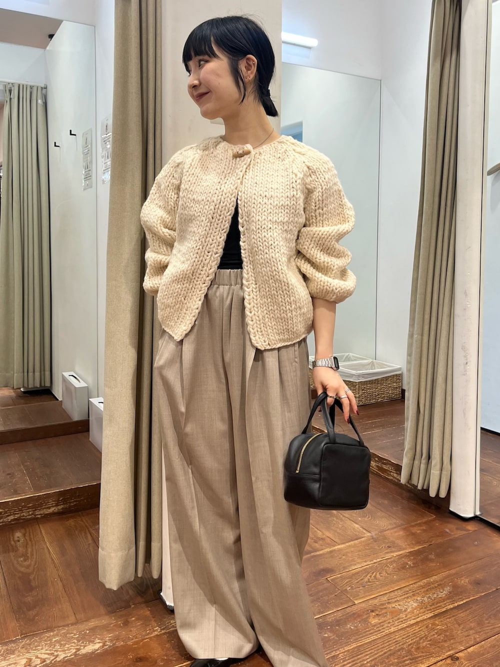 ボトムスや、ワンピースなど何にでも重ねやすいです。