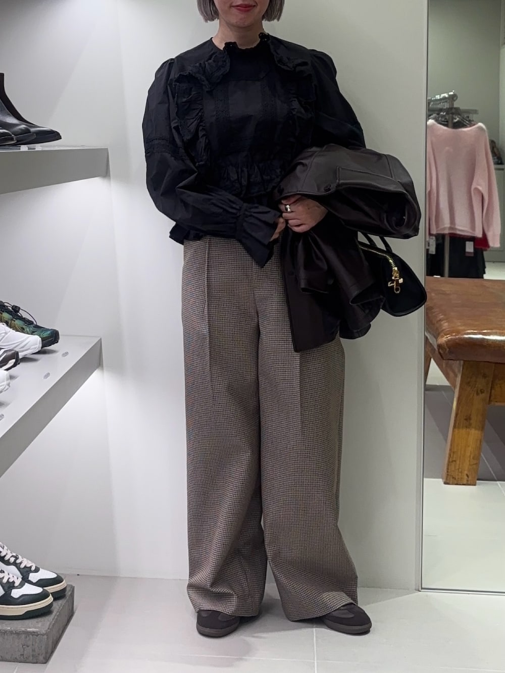 URBAN RESEARCHウールブレンドチェックワイドパンツ- 着用カラー: