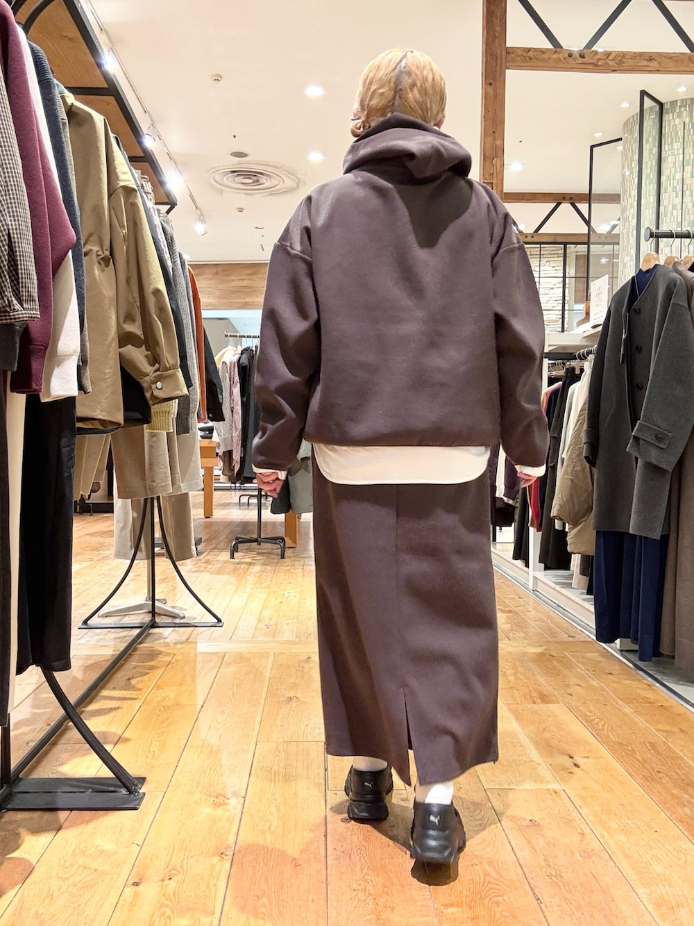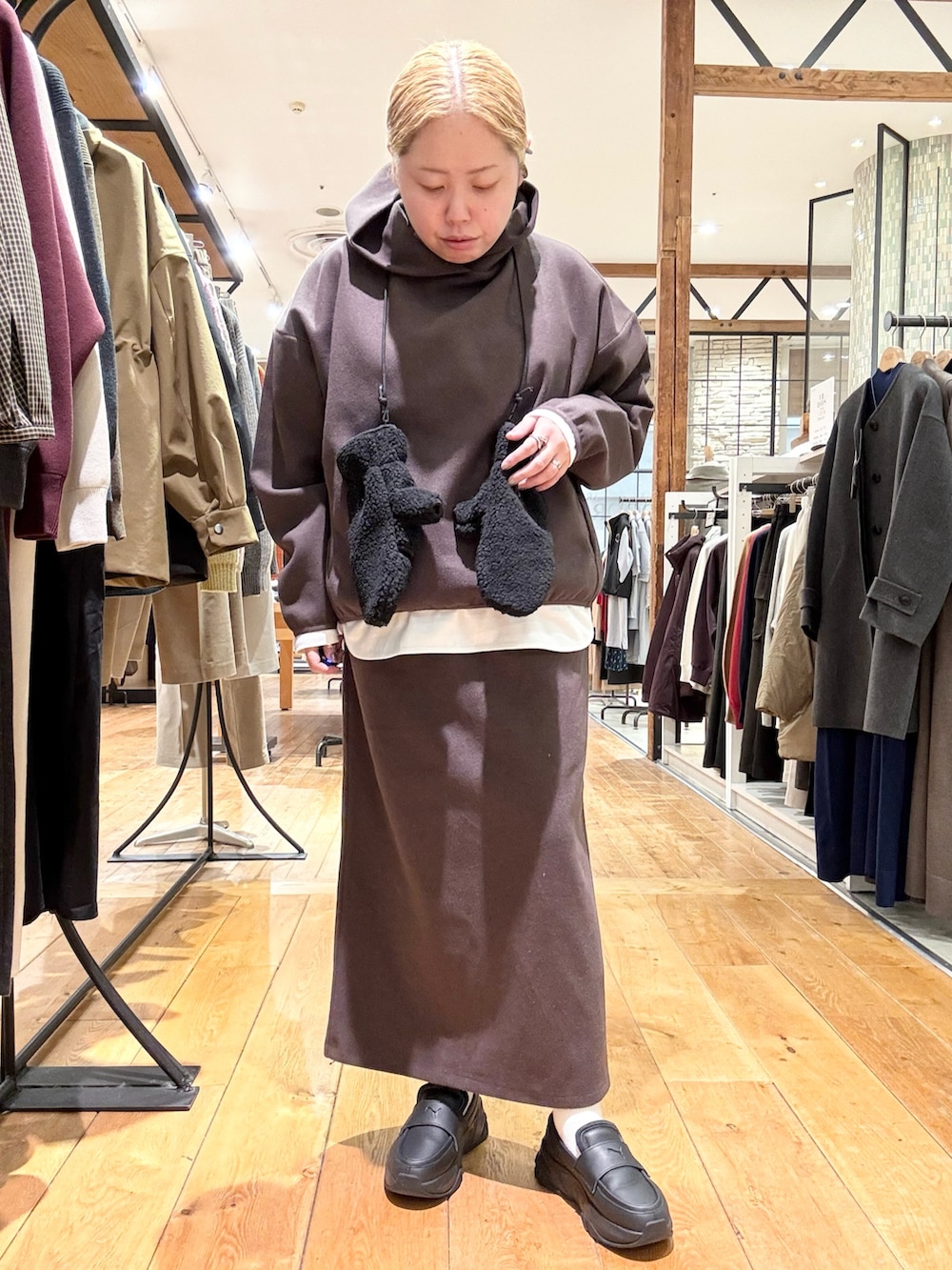 大きめのフードは顔周りをすっきり見せてくれダボッとしたサイズ感