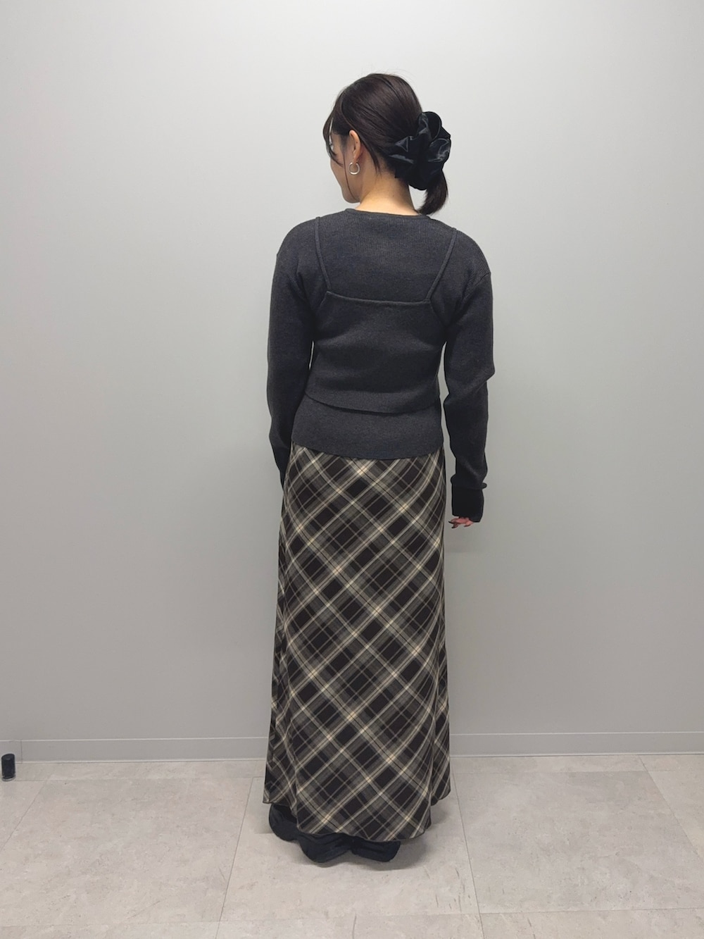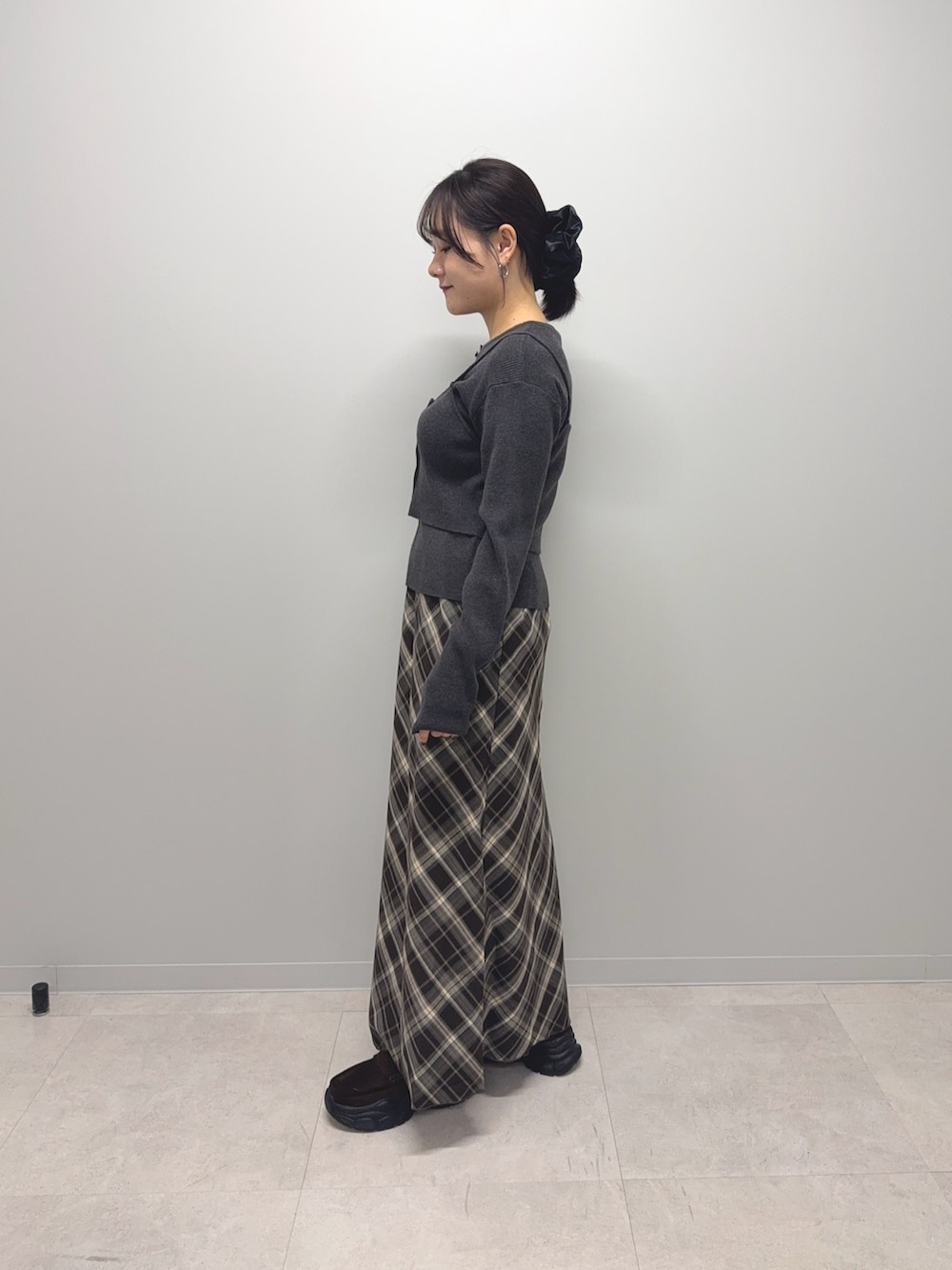 スカートはチェック×ブラウン合わせでトレンド感もしっかり!シルエットがとても綺麗です!