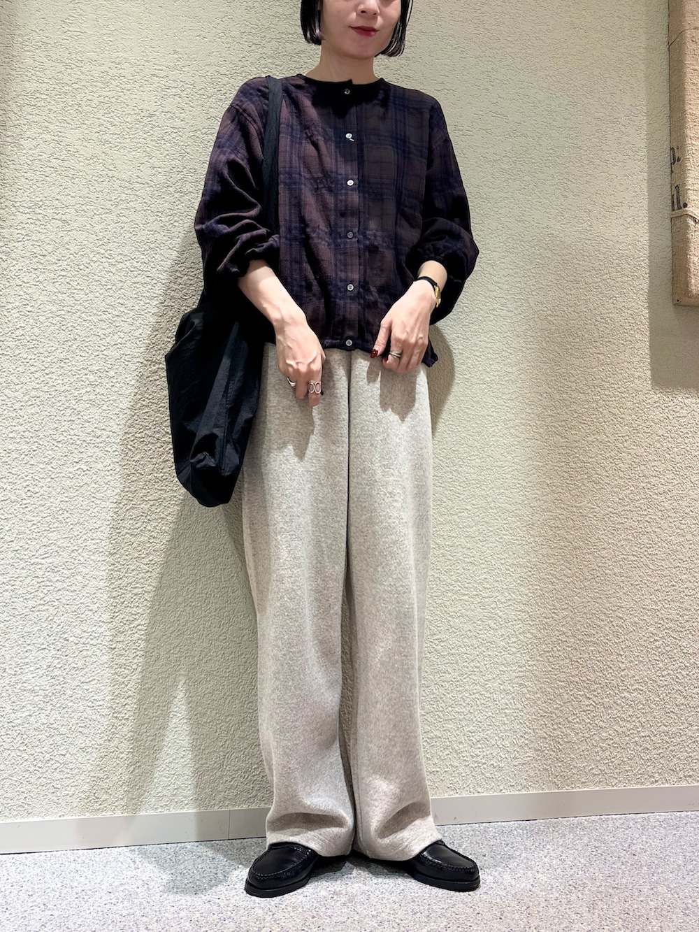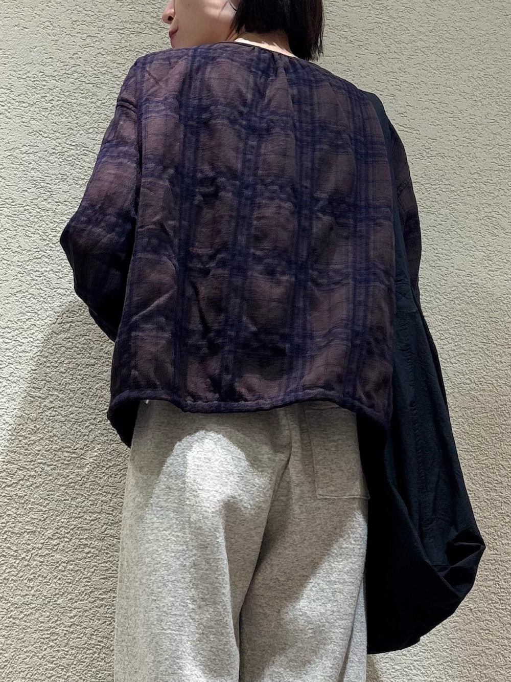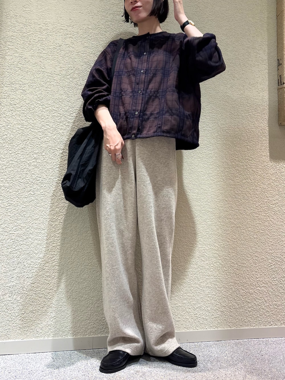 落ち着いたカラーのチェック柄で派手すぎず、コーディネートに取り入れやすい柄物アイテムです。