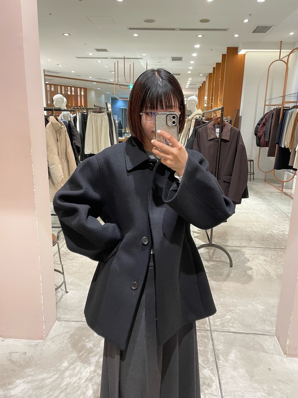 サラッと羽織りやすいミドル丈コート。