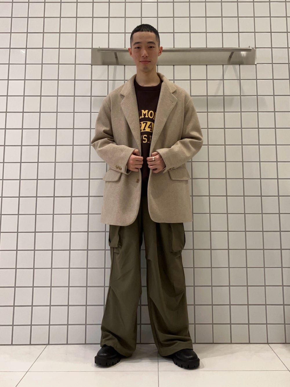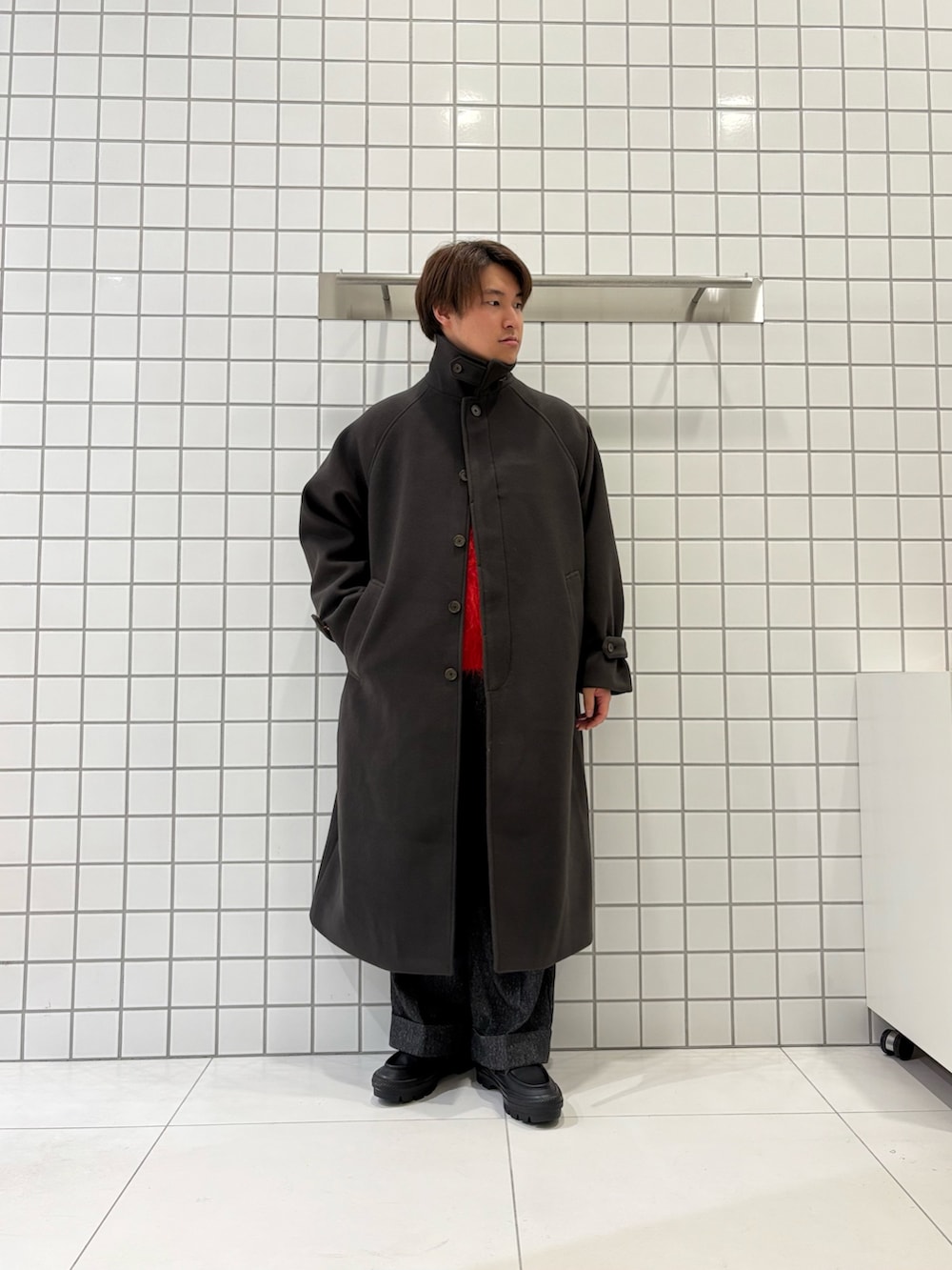 ダークブラウンのコートを合わせて全体的には少し落ち着きのある印象に仕上げました!